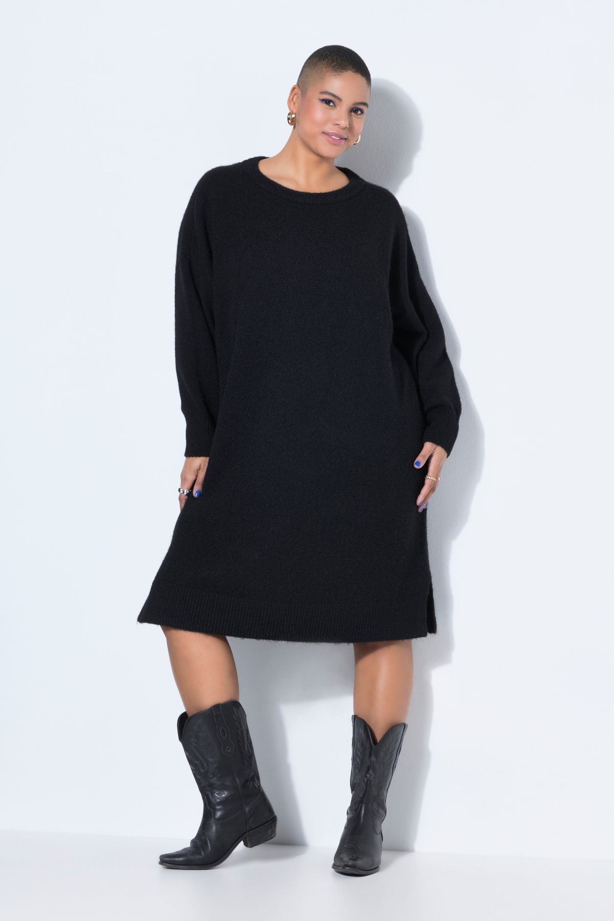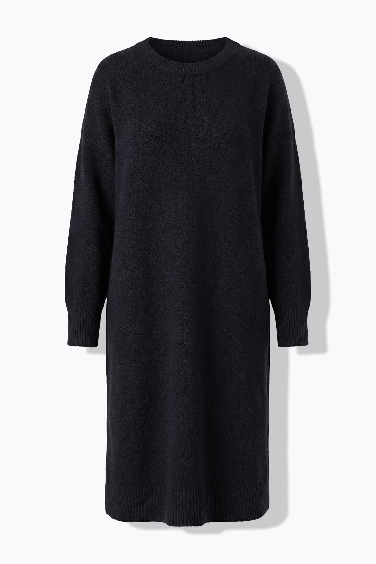 Fine Knit Dress. Average lenght, round neck and drop shoulders. Long sleeves and hem with ribbed cuffs.