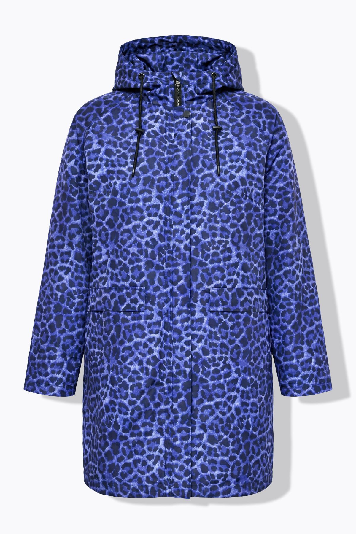 Leopard Print Raincoat, with all seams additionally welded. Straight, wide fit with stand-up collar and hood with cord. Hidden 2-way zipper, flap patch pockets. Rounded hem, longer at the back. Raglan long sleeves, adjustable with snap button.& 10;<br>
