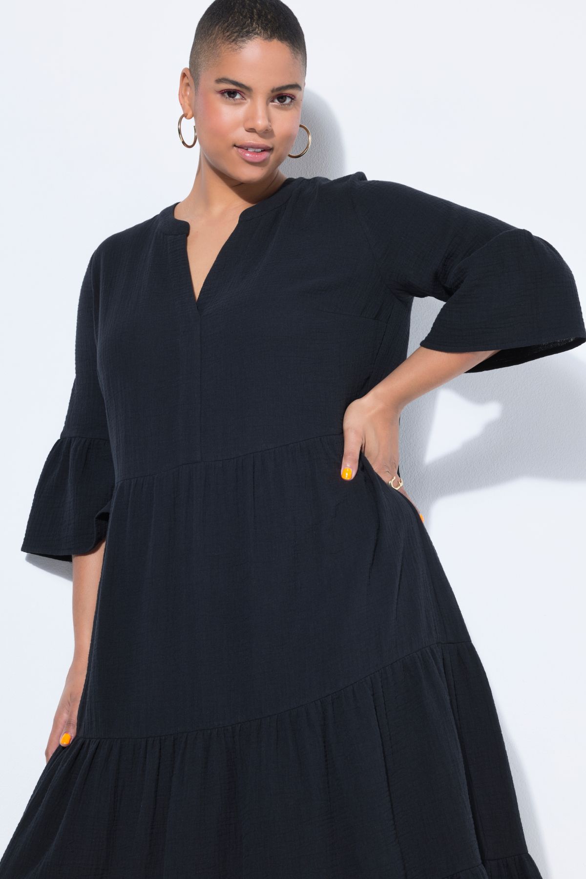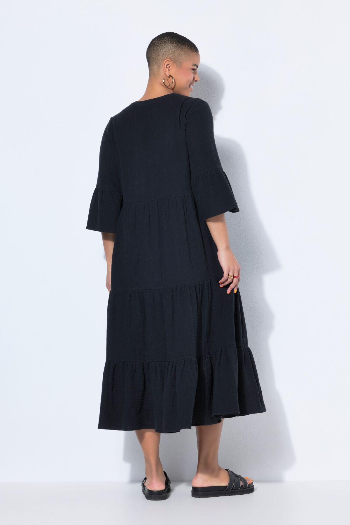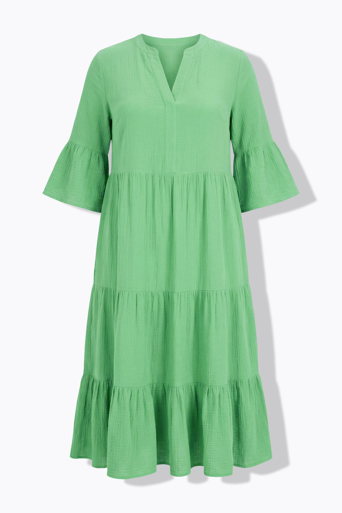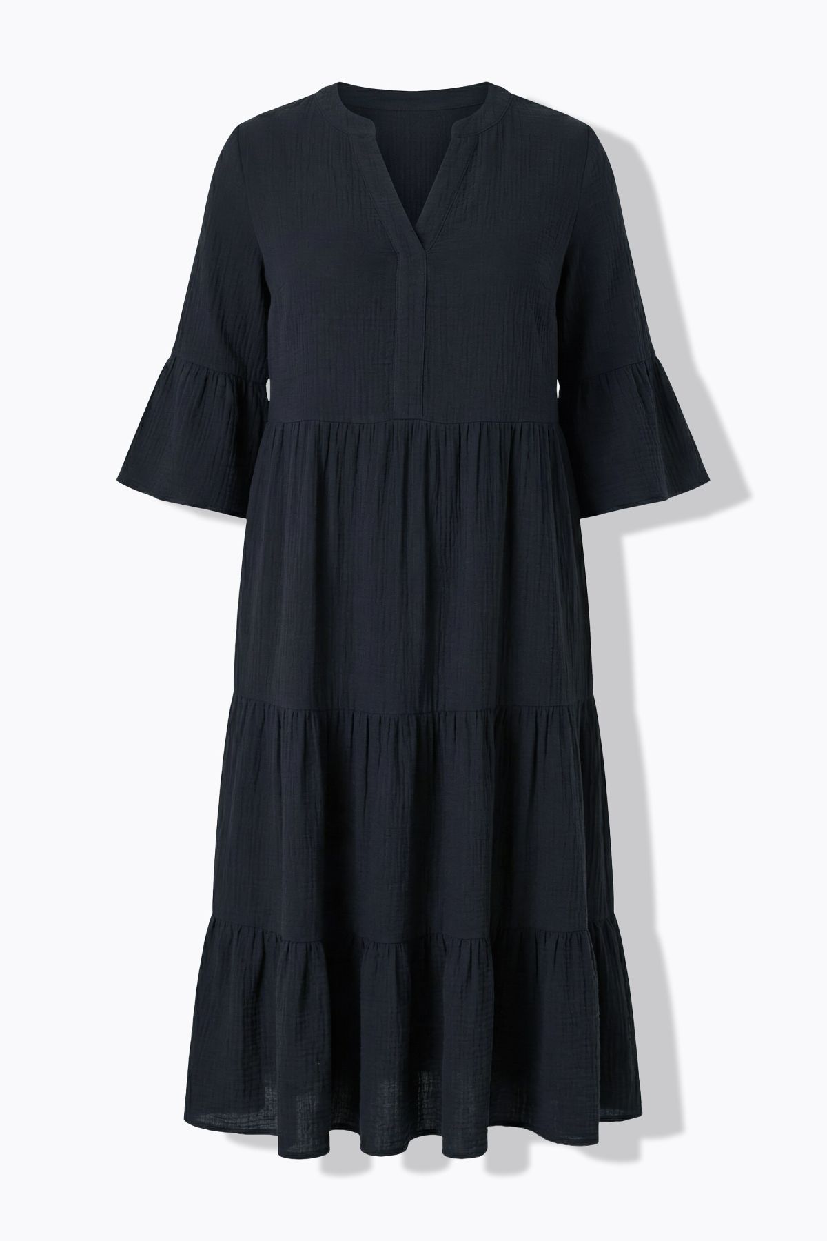 Maxi dress, A-line, muslin, stand-up collar, flounces, 3/4 sleeves