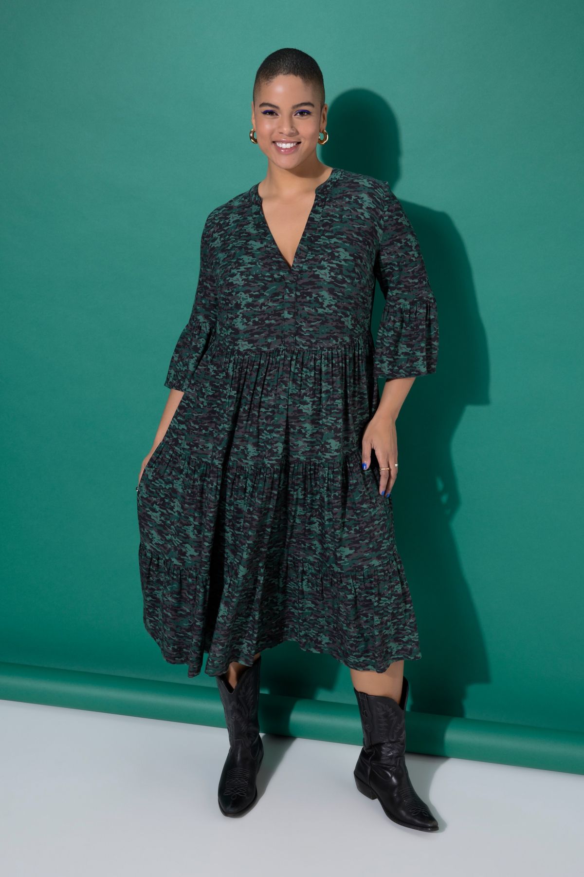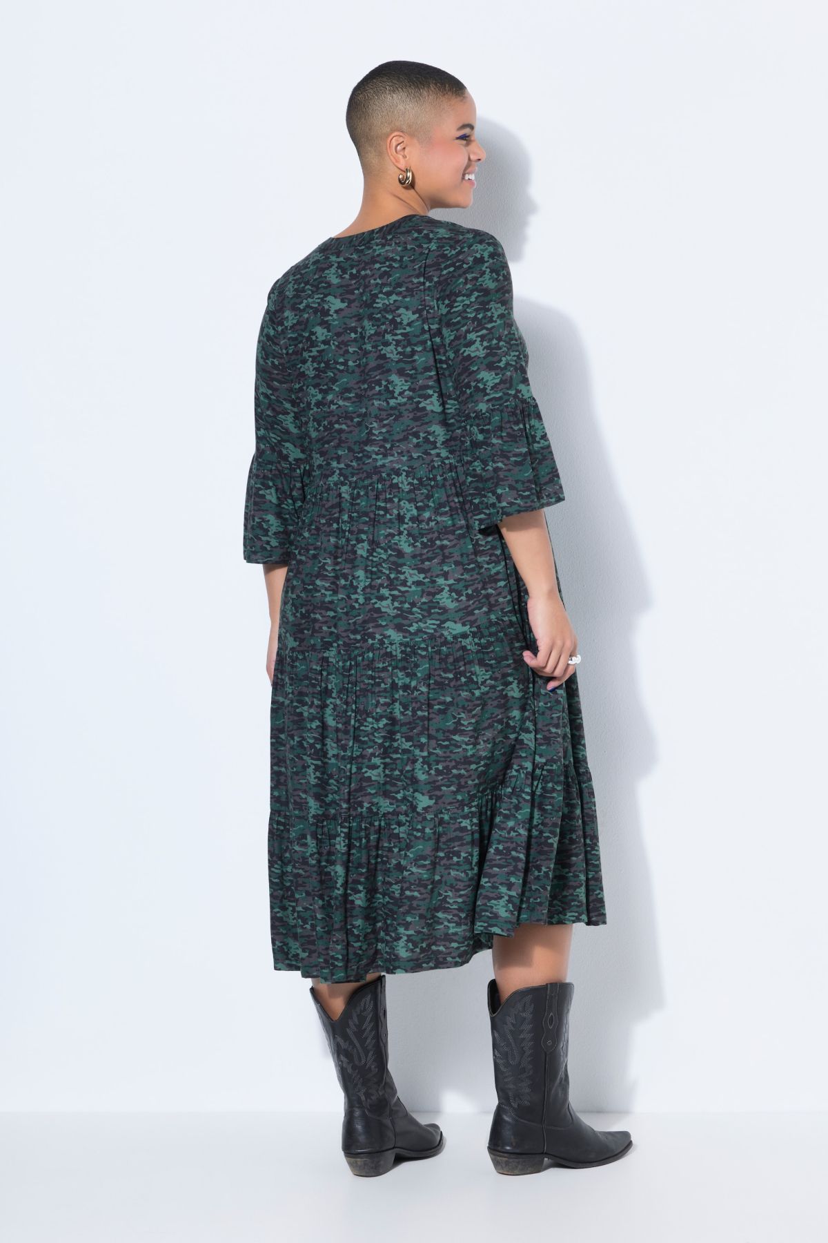 Maxi dress, A-line, camouflage, 3/4 sleeves