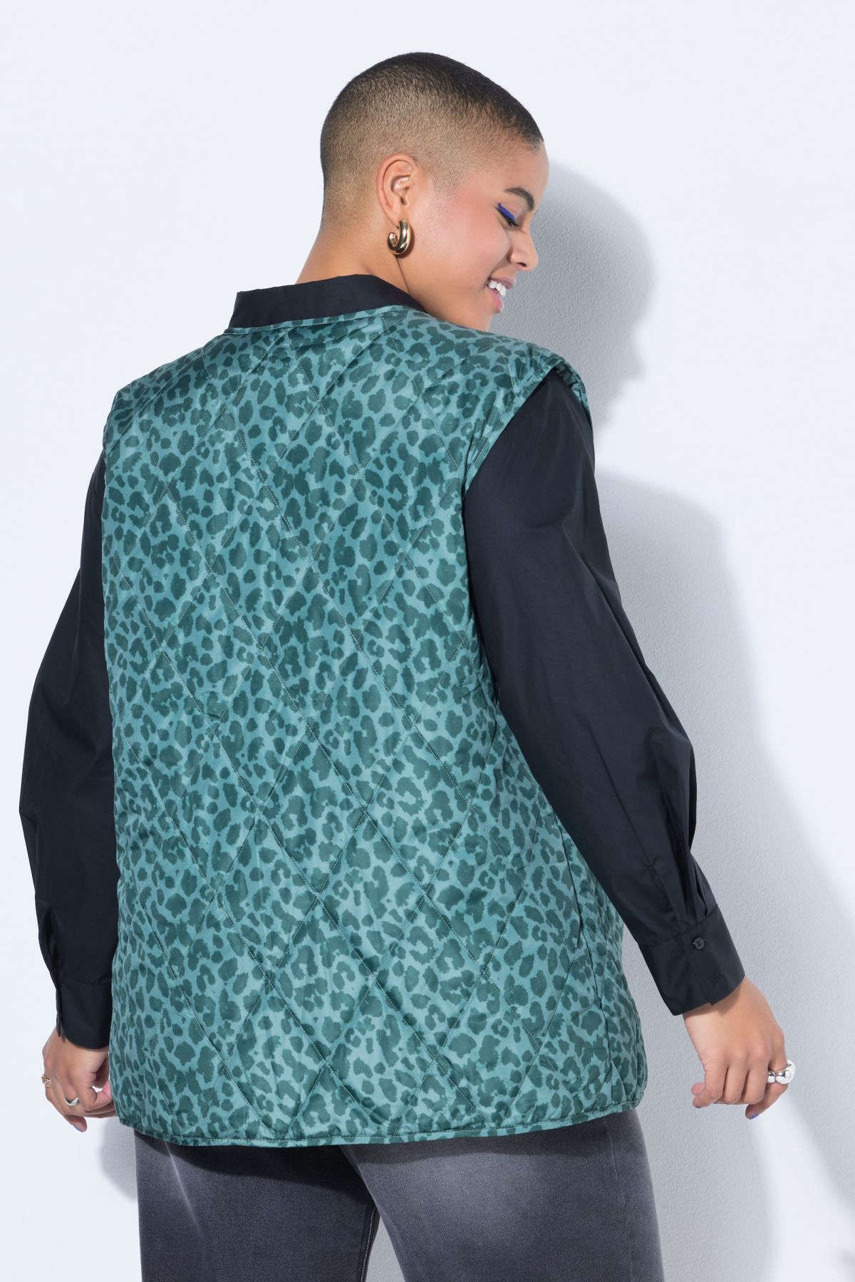 Quilted gilet, oversize shape, light quilting, leopard print