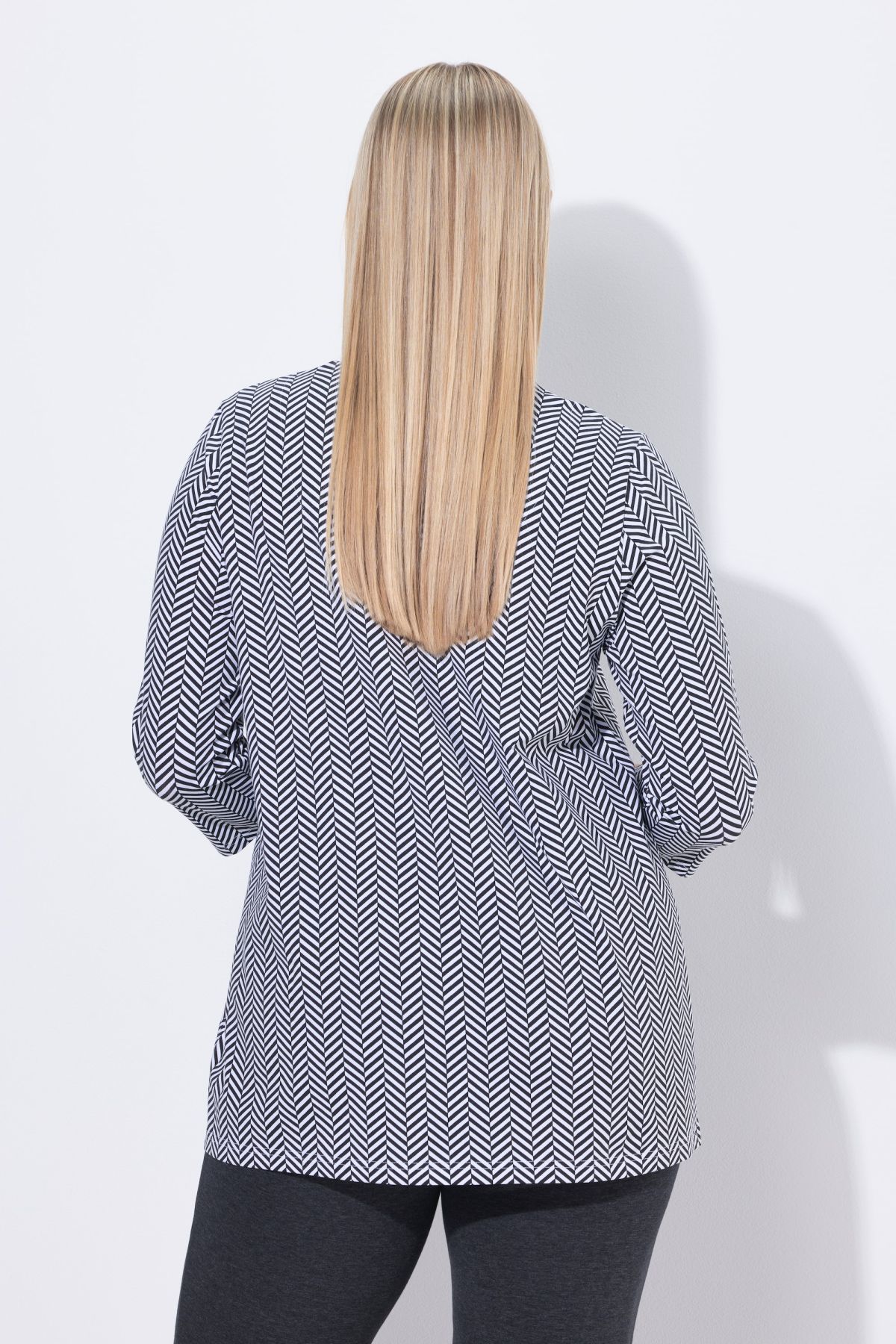 Herringbone Print Tee# a classic herringbone pattern and flattering a-line fit in a style you'll love to wear over and over. Round notch neck and 3/4 sleeves.
