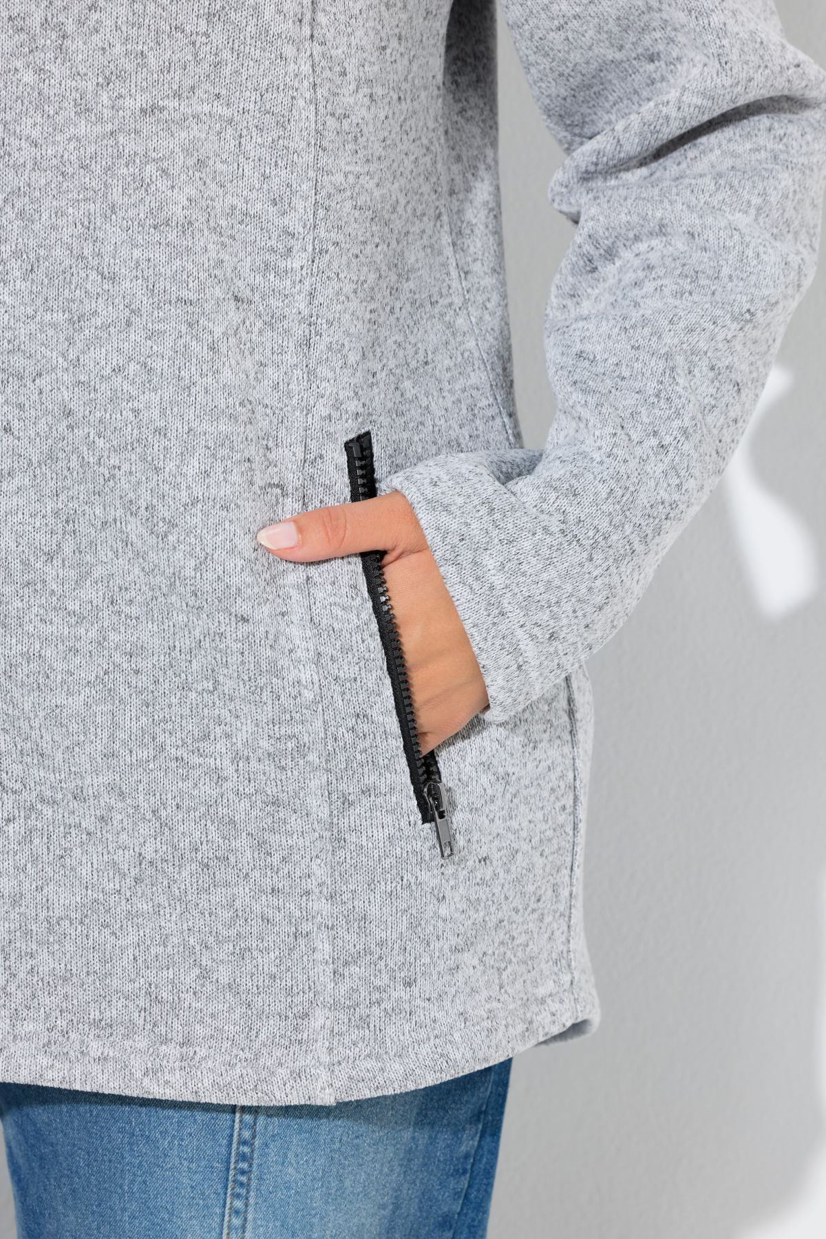 Melange Knit Fleece Lined Hooded Jacket