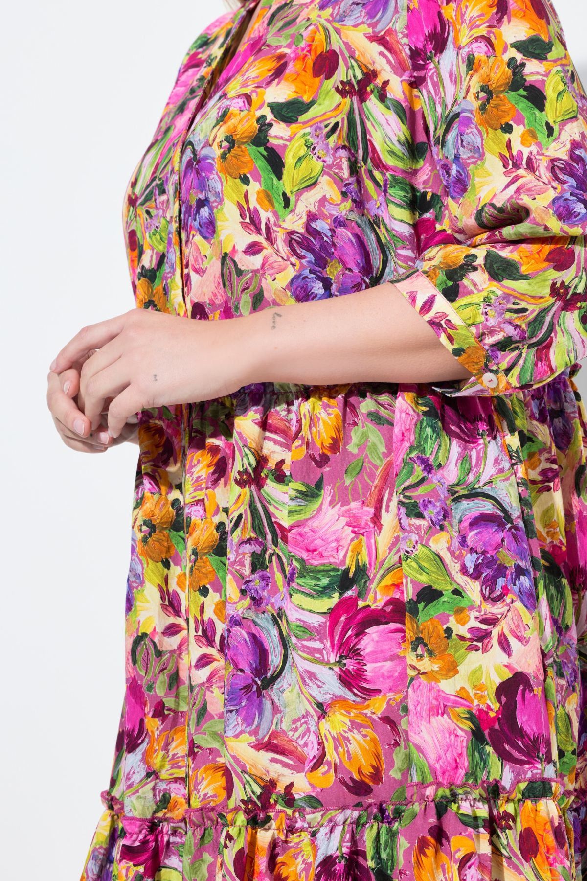 Mixed Floral Print 3/4 Sleeve Dress