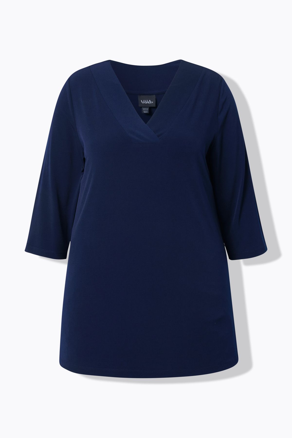 Matte Jersey V-Neck Swing Vented Three Quarter Sleeve Tunic