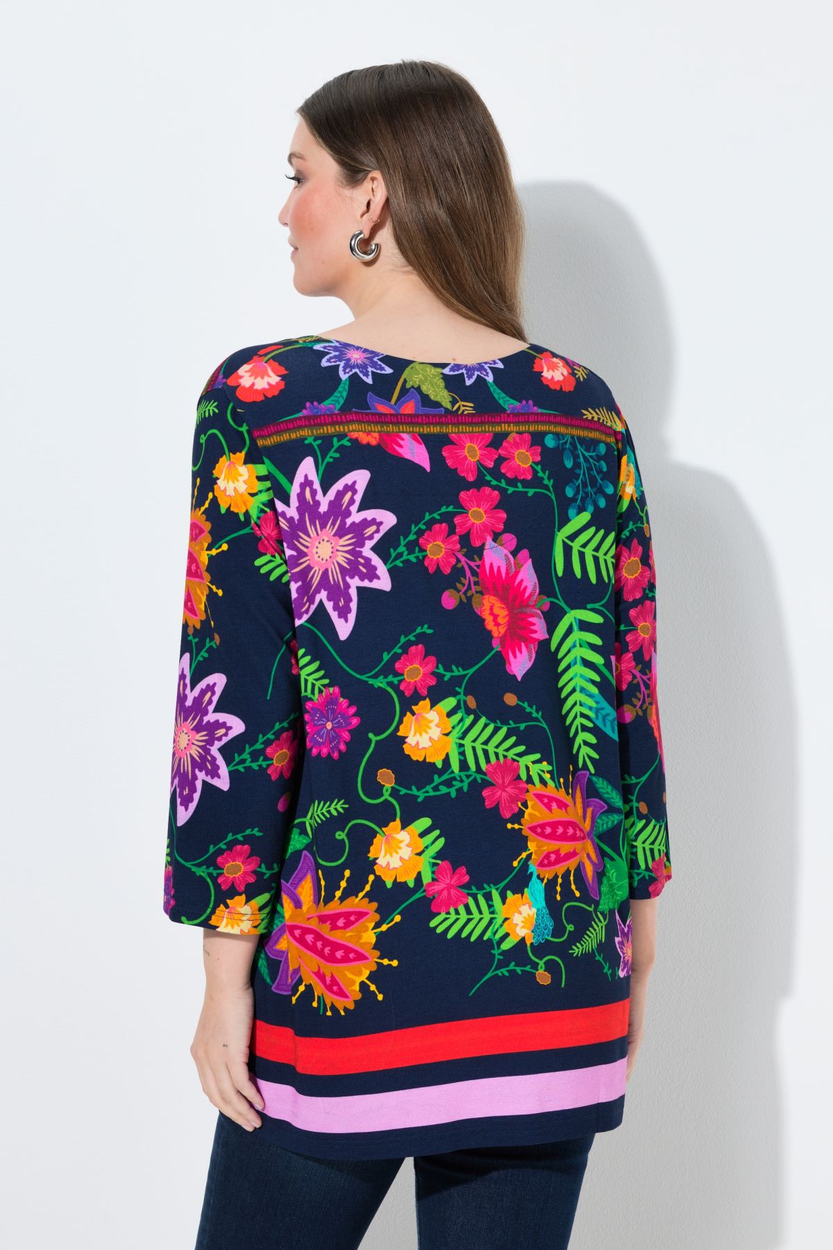 Country Floral Split Neck Tee - A country-style botanical print adds feminine flair to this flattering a-line silhouette.