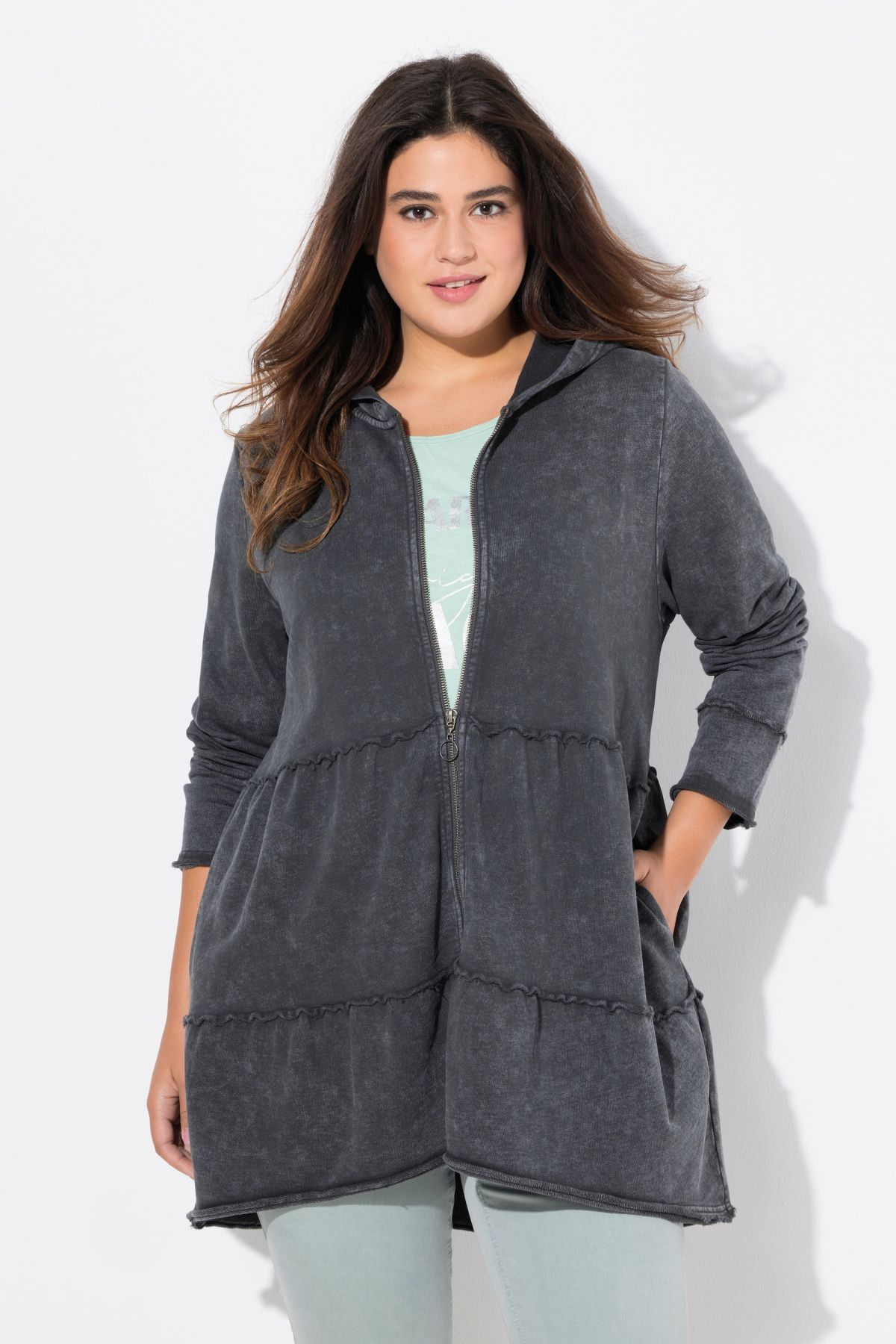 Tiered Flounce Panel Zip Up Hoodie