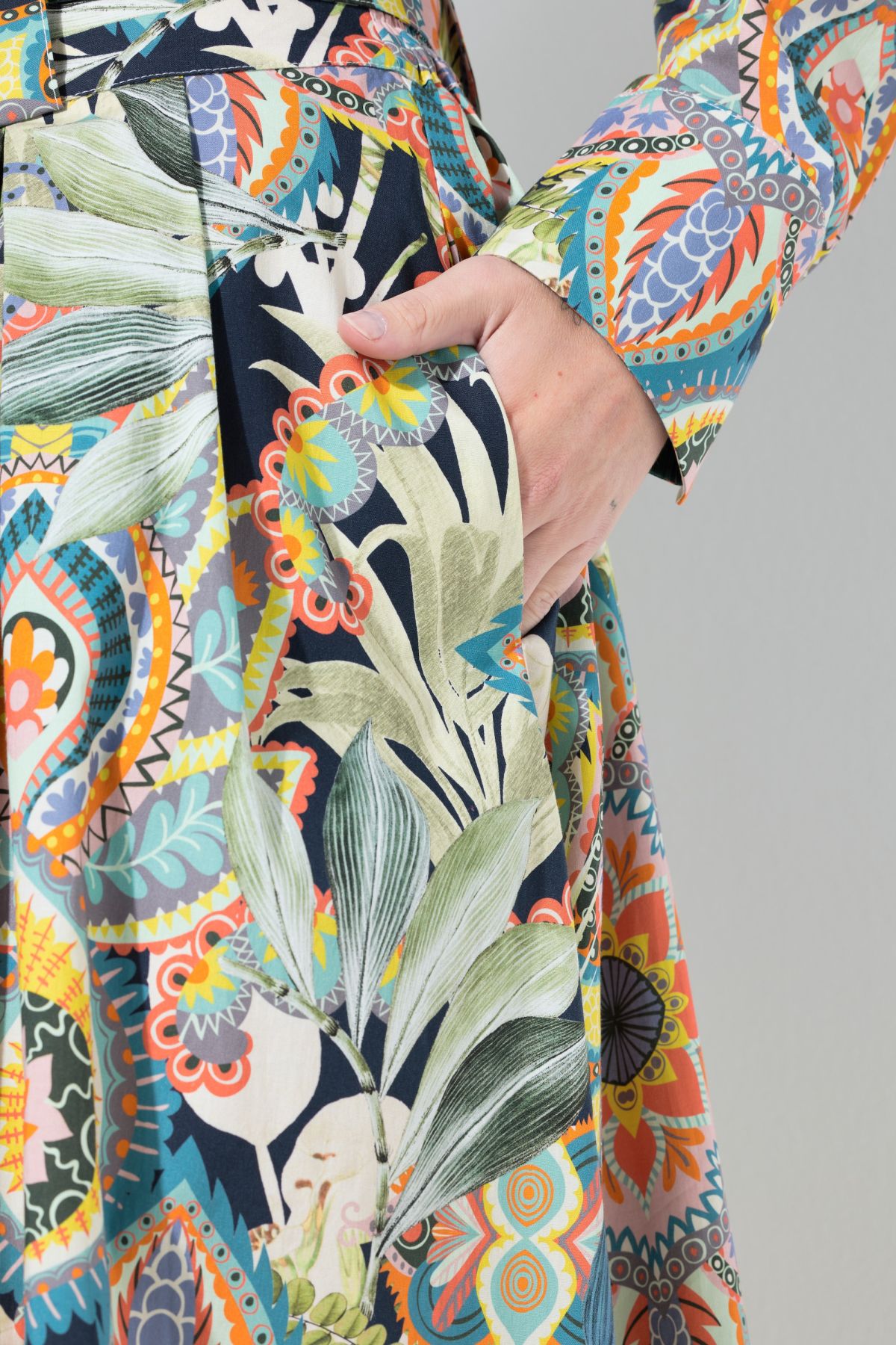 Groovy Patchwork Print Skirt A strikingly eclectic print with a partially elastic comfort waistband for a smooth, pinch-free silhouette.