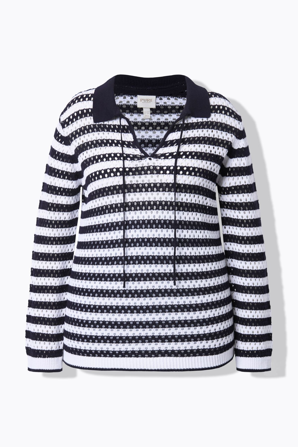 Eco Cotton Openwork Knit Polo Sweater Pair this openwork knit style with a tank top, or with your favorite bralette for a dramatic pop of color.