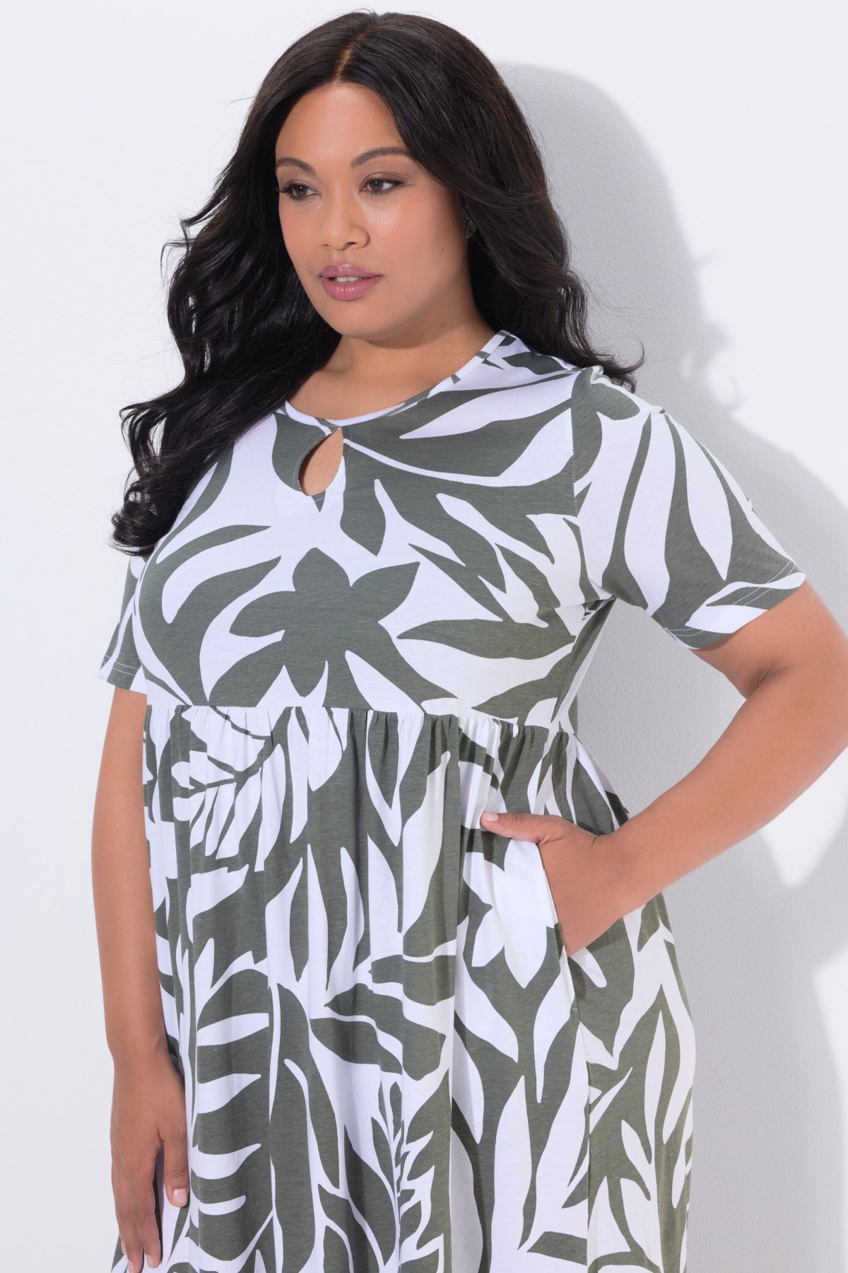 Monochrome Leaves A-Line Knit Pocket Dress - Style to fit your schedule.
