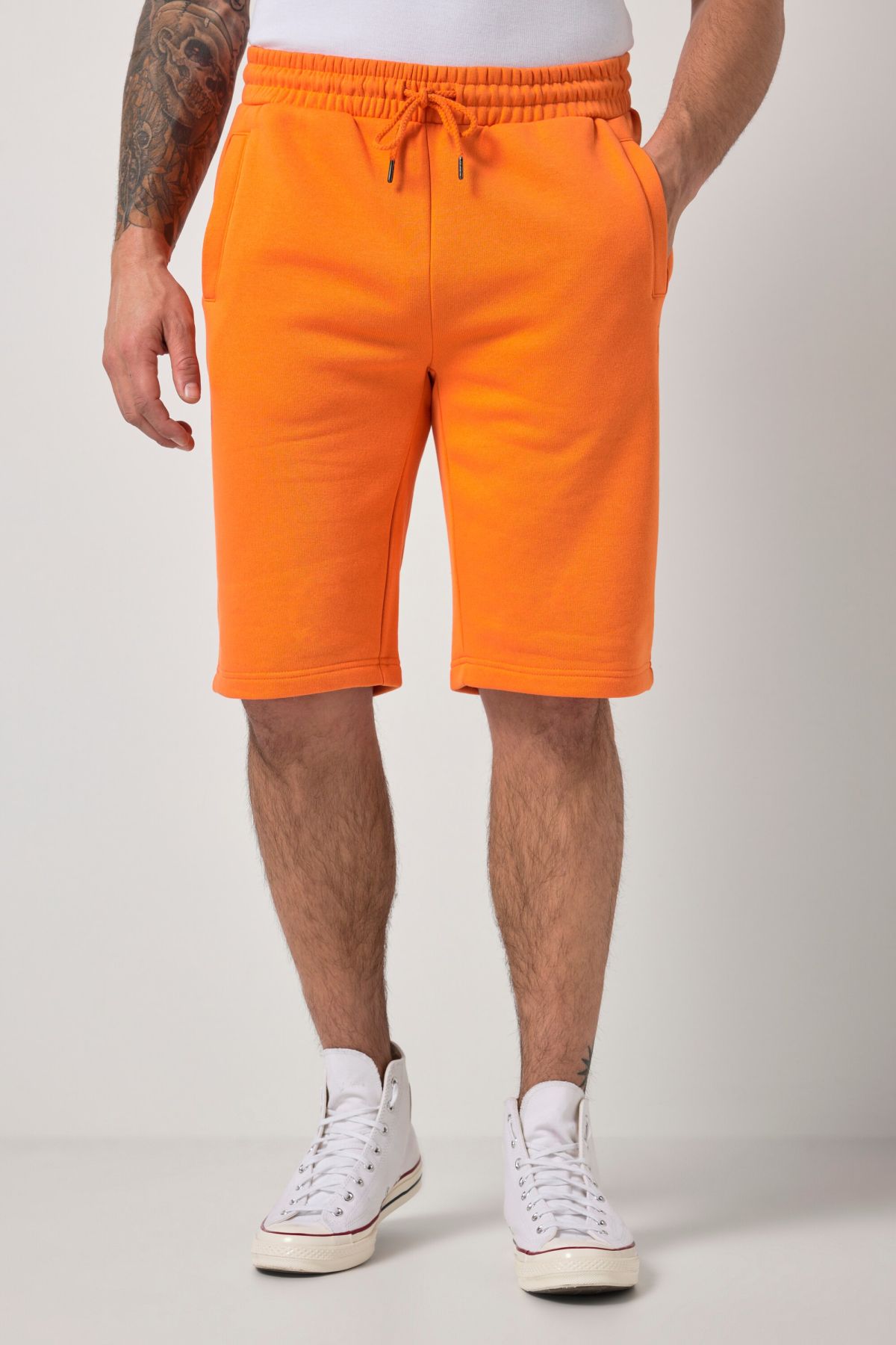 JP Logo Sweat Shorts - adjustable drawstring elastic waist, 2 welt front pockets and back patch pocket. Durable soft fabric. Long straight cut for sport and leisure.
