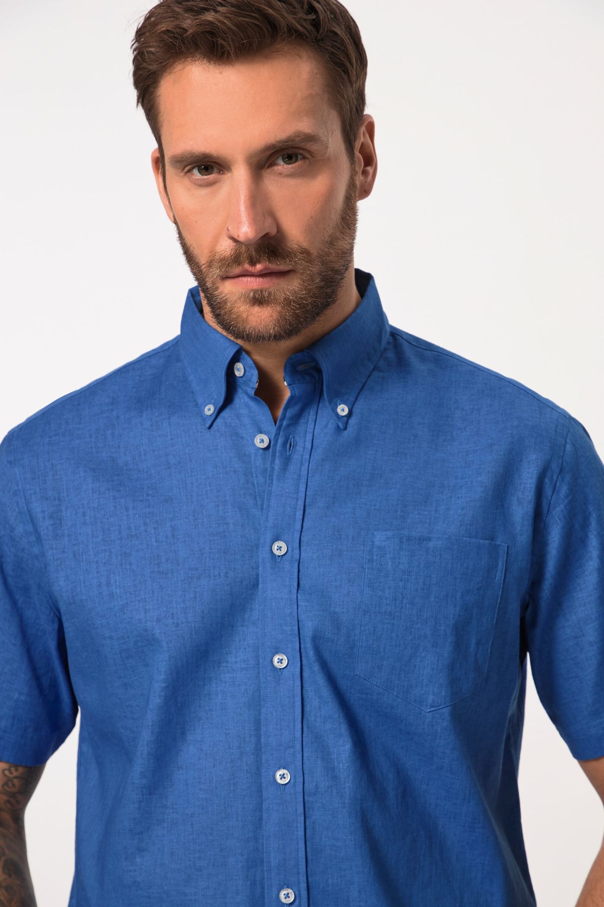 Short Sleeve Linen Blend Shirt with button-down collar. The proven JP1880 Modern Fit is slightly fitted, can also be worn casually untucked. For optimal comfort, larger shirt buttons from size 4XL.
