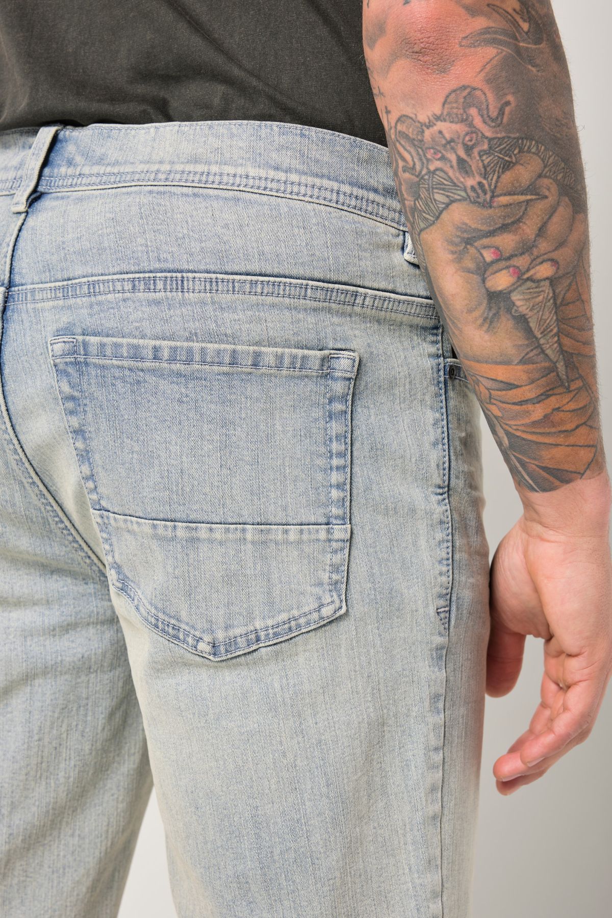 Специална кройка до размер 72, FLEXNAMIC®, максимална свобода на движение и гъвкавост, 5 джоба, винтидж пране, права кройка, вътрешен шев приблизително 28-30 см.
