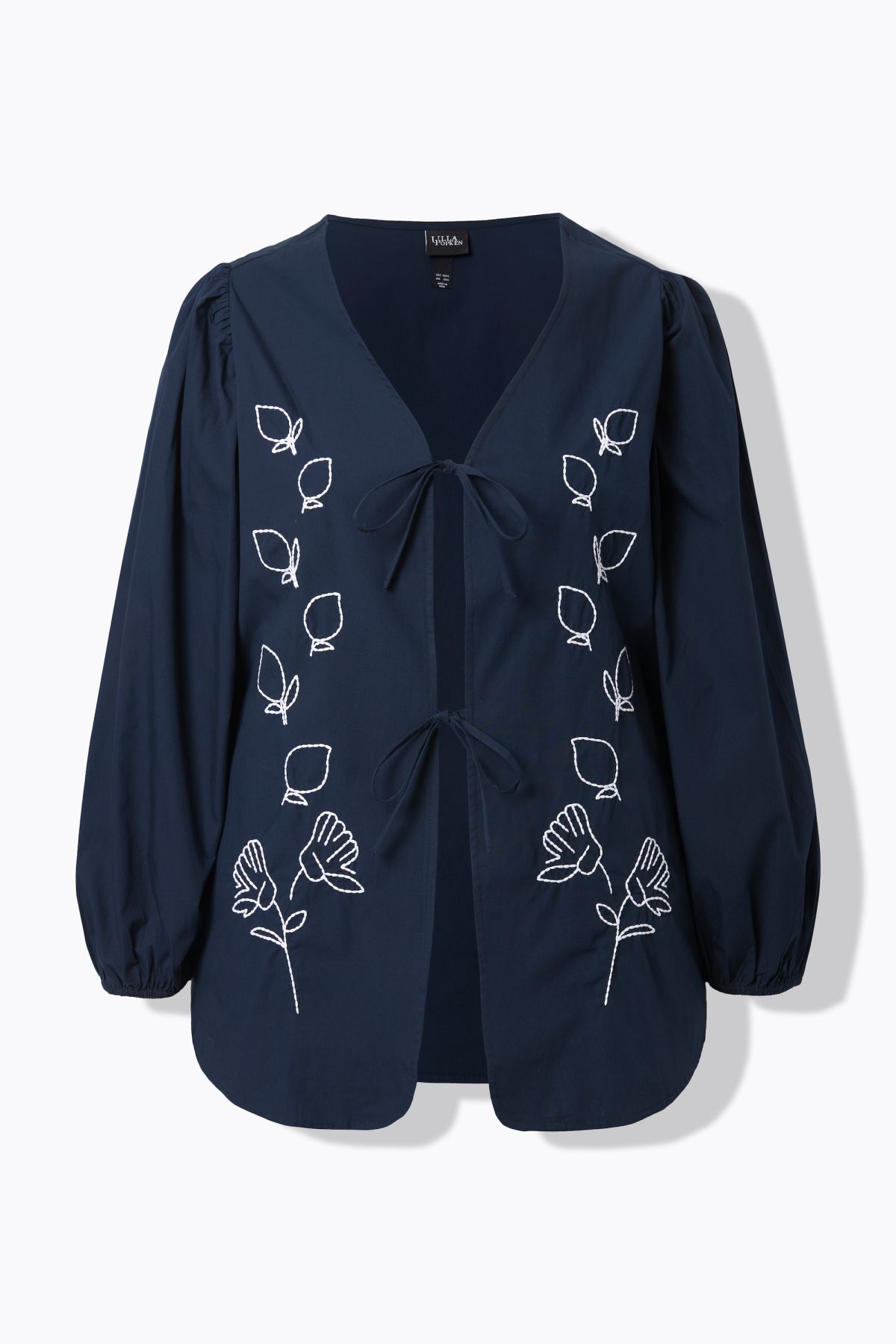 Eco Cotton Leaf Embroidered Jacket A relaxed open-shape silhouette with delicate ribbon tie closures for a romantic, feminine feel.