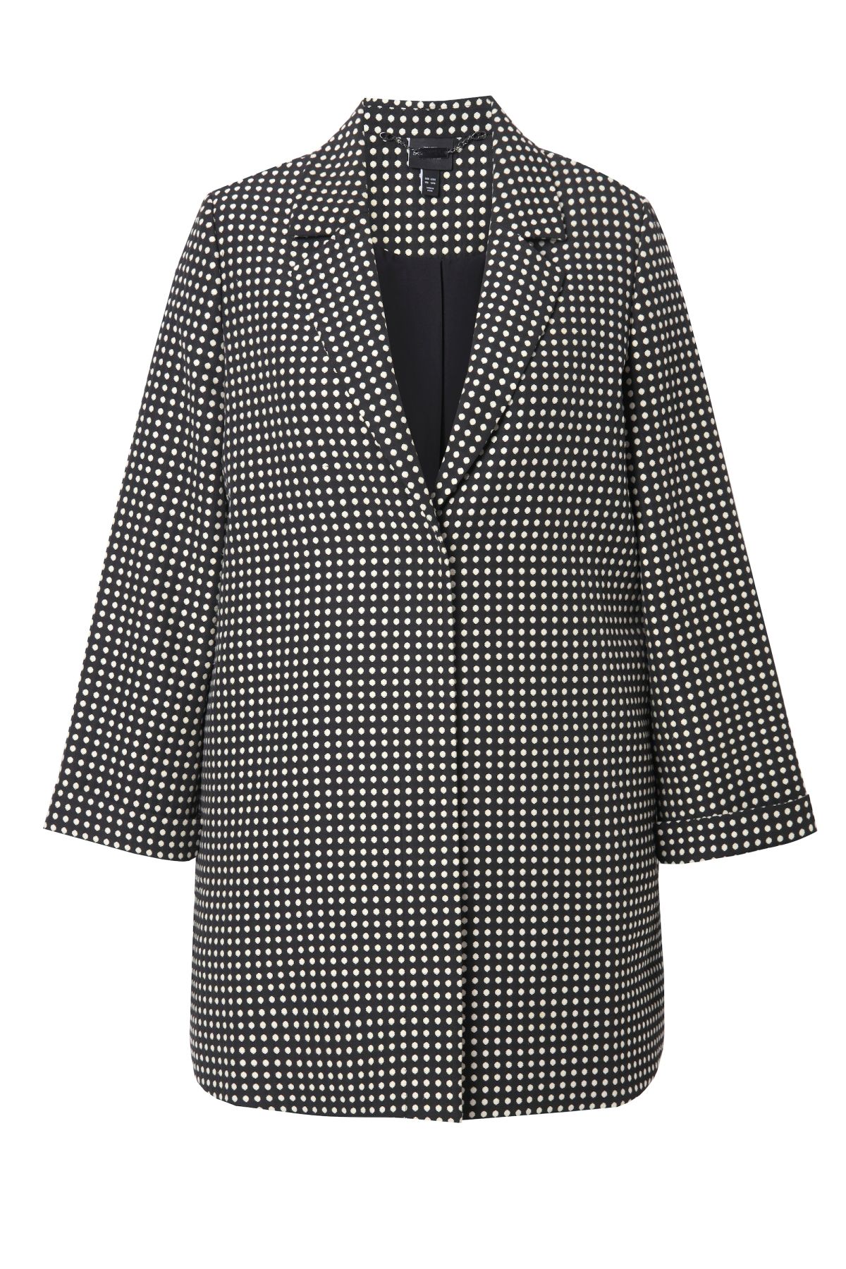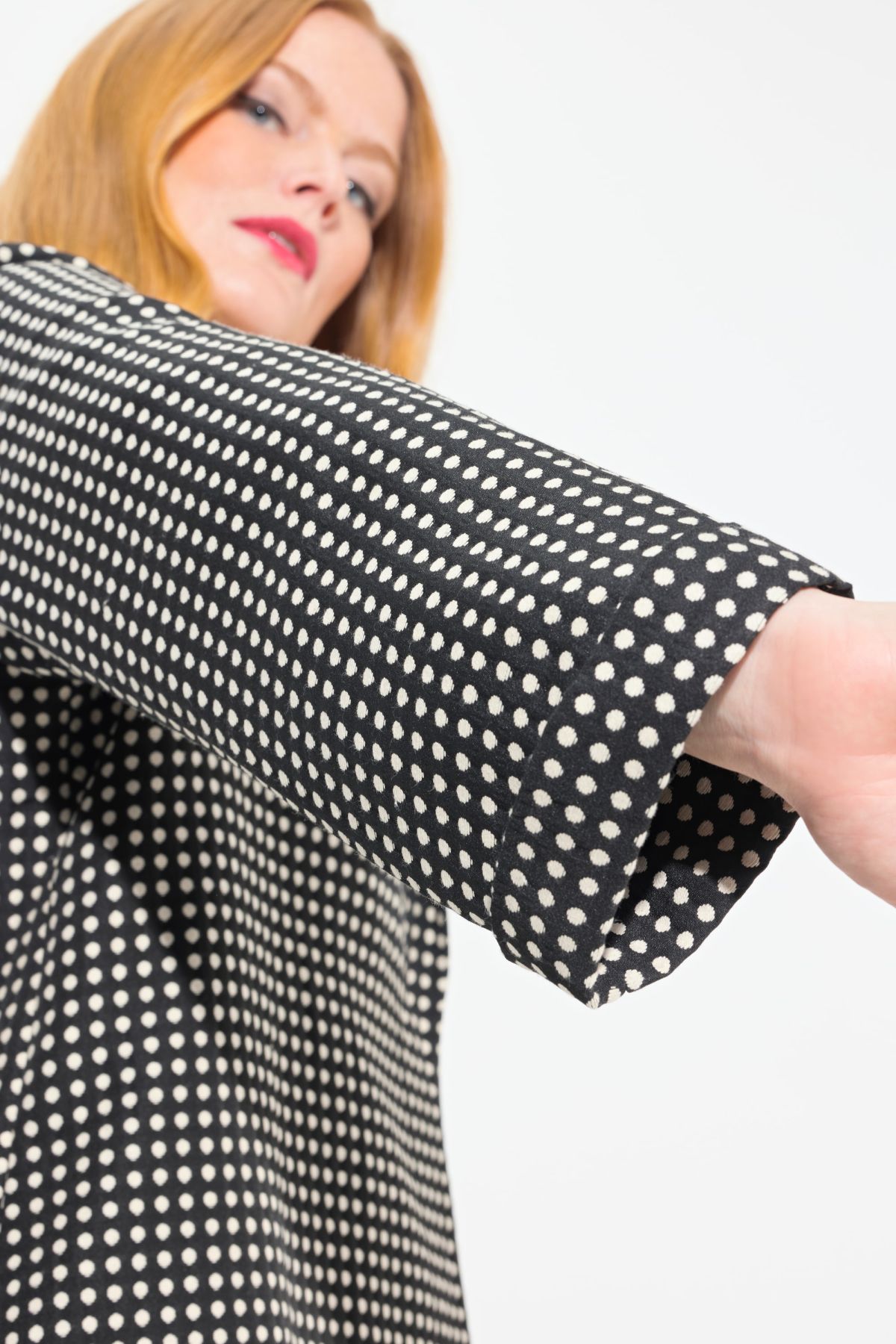 Textured Polka Dot Blazer - A classic lapel collar paired with a bold, oversized silhouette for a modern look.