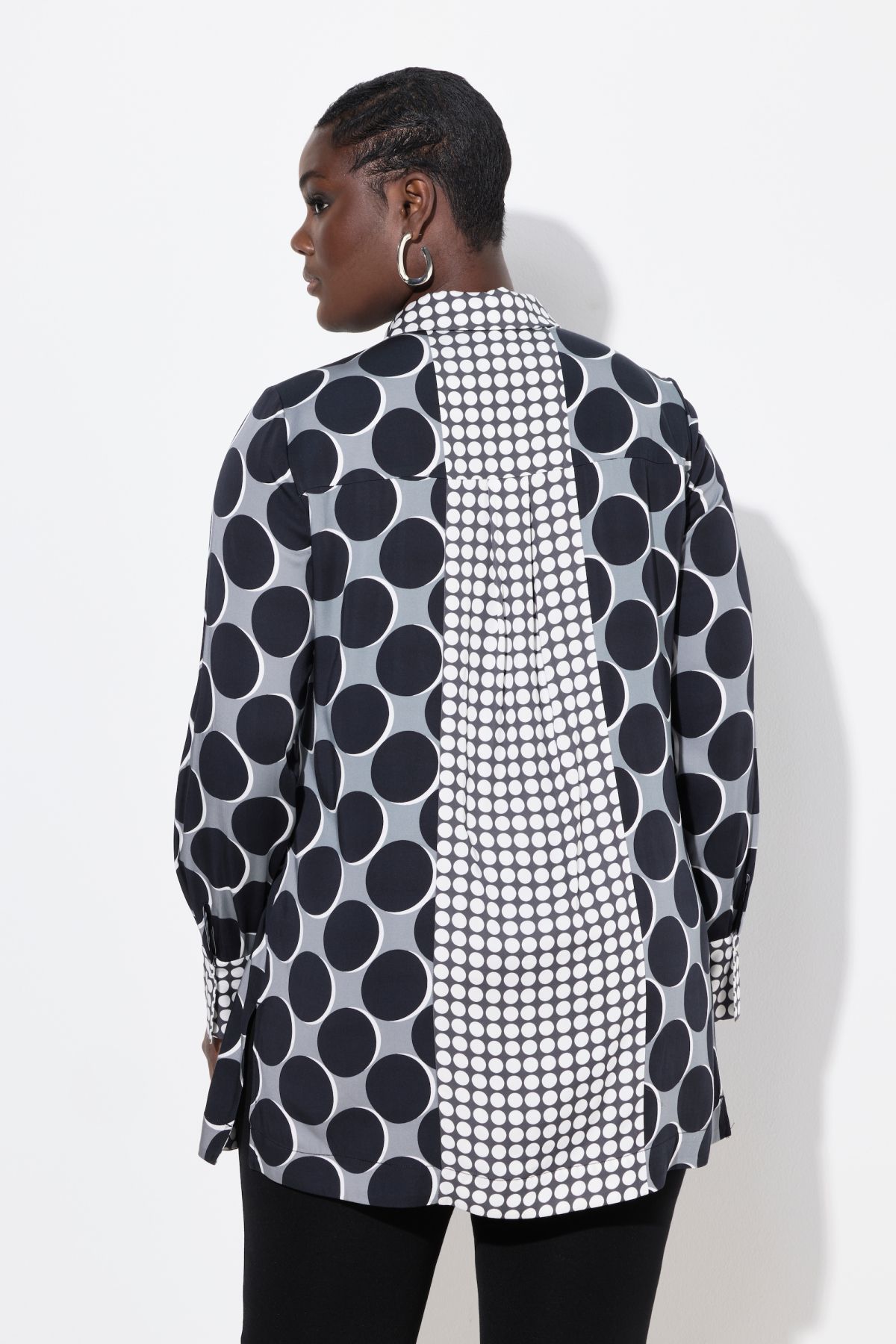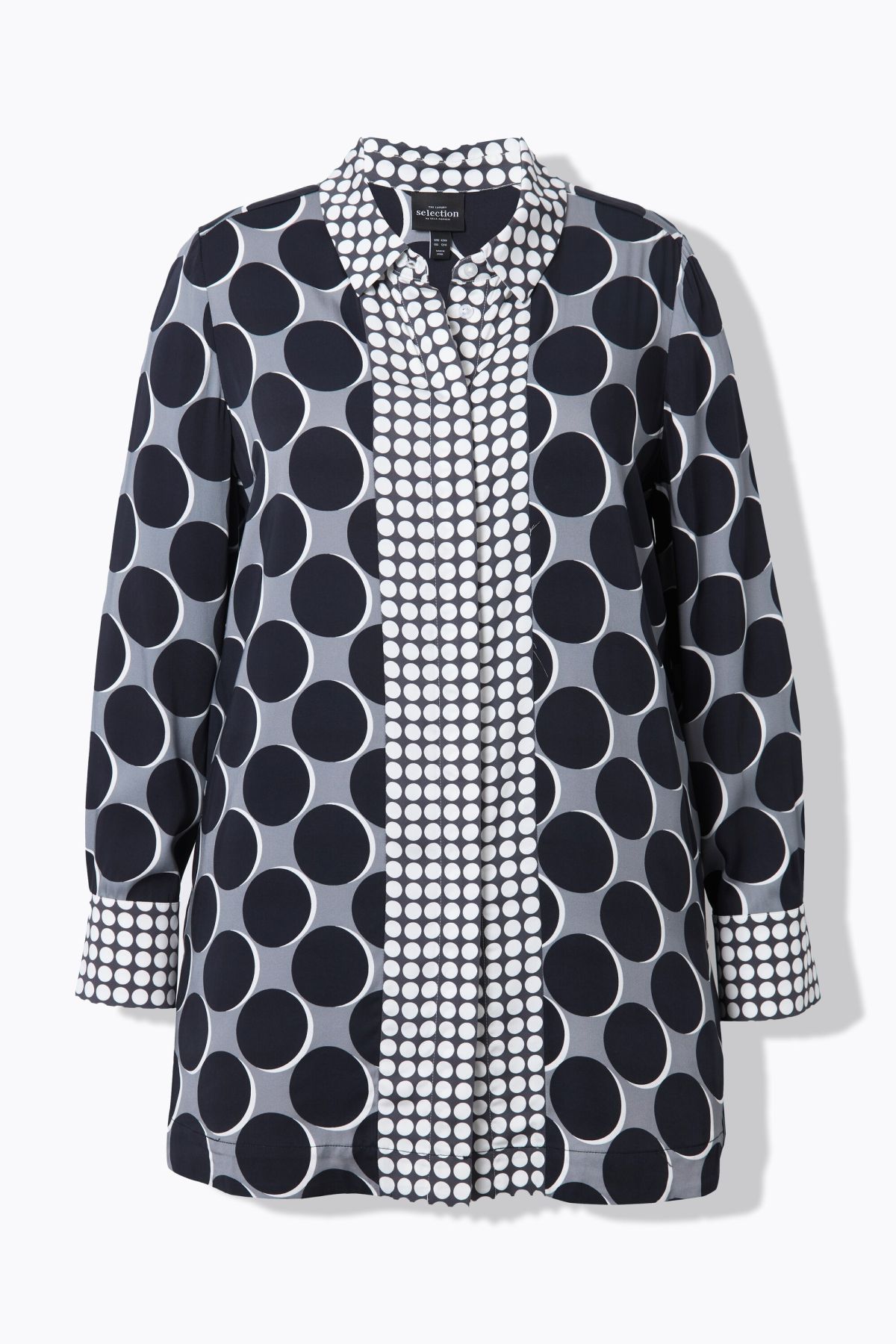 Mixed Polka Dot Long Sleeve Tunic Blouse