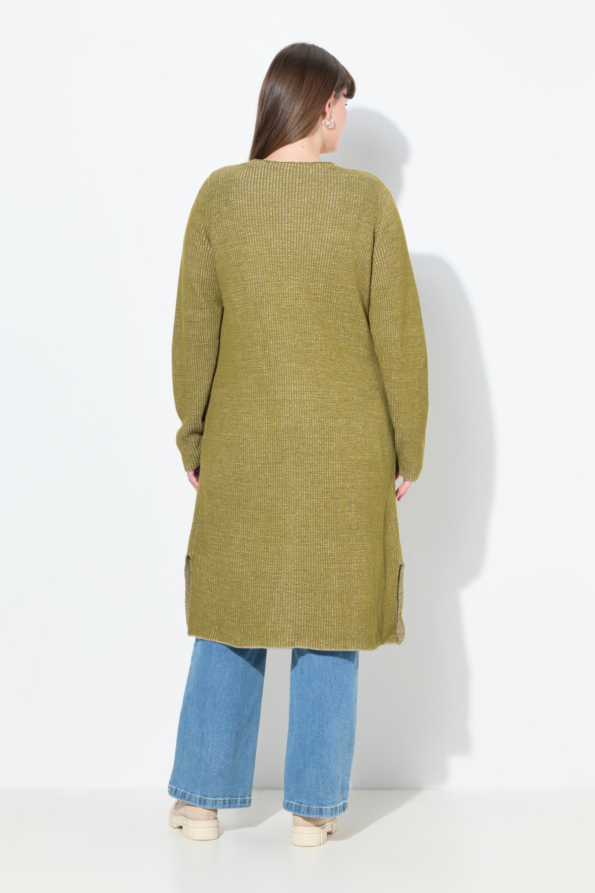 Eco Cotton Two-Tone Ribbed Knit Extra Long Cardigan