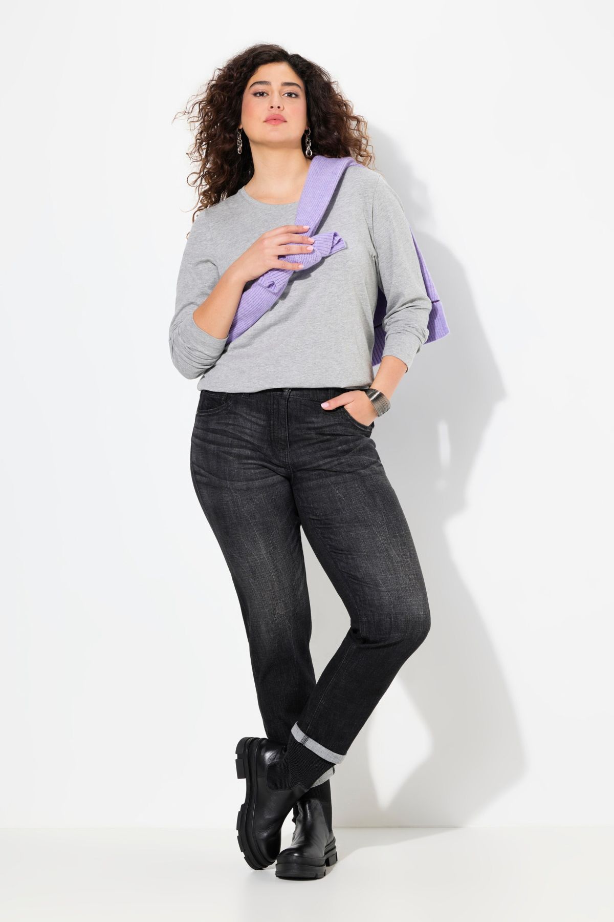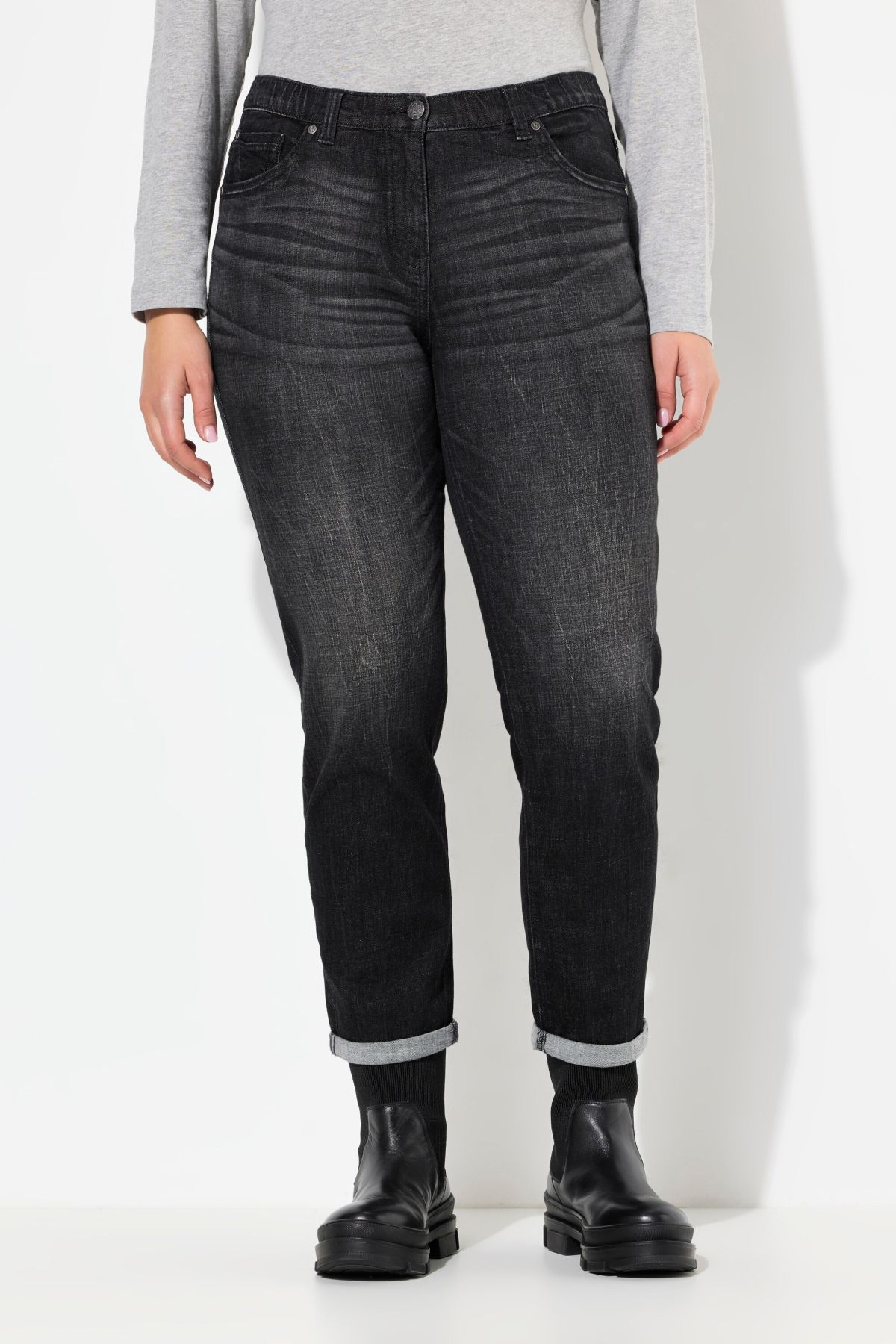 Acid Wash Boyfriend Jeans - A relaxed, wider silhouette with a light acid wash finish for a casual, lived-in look.