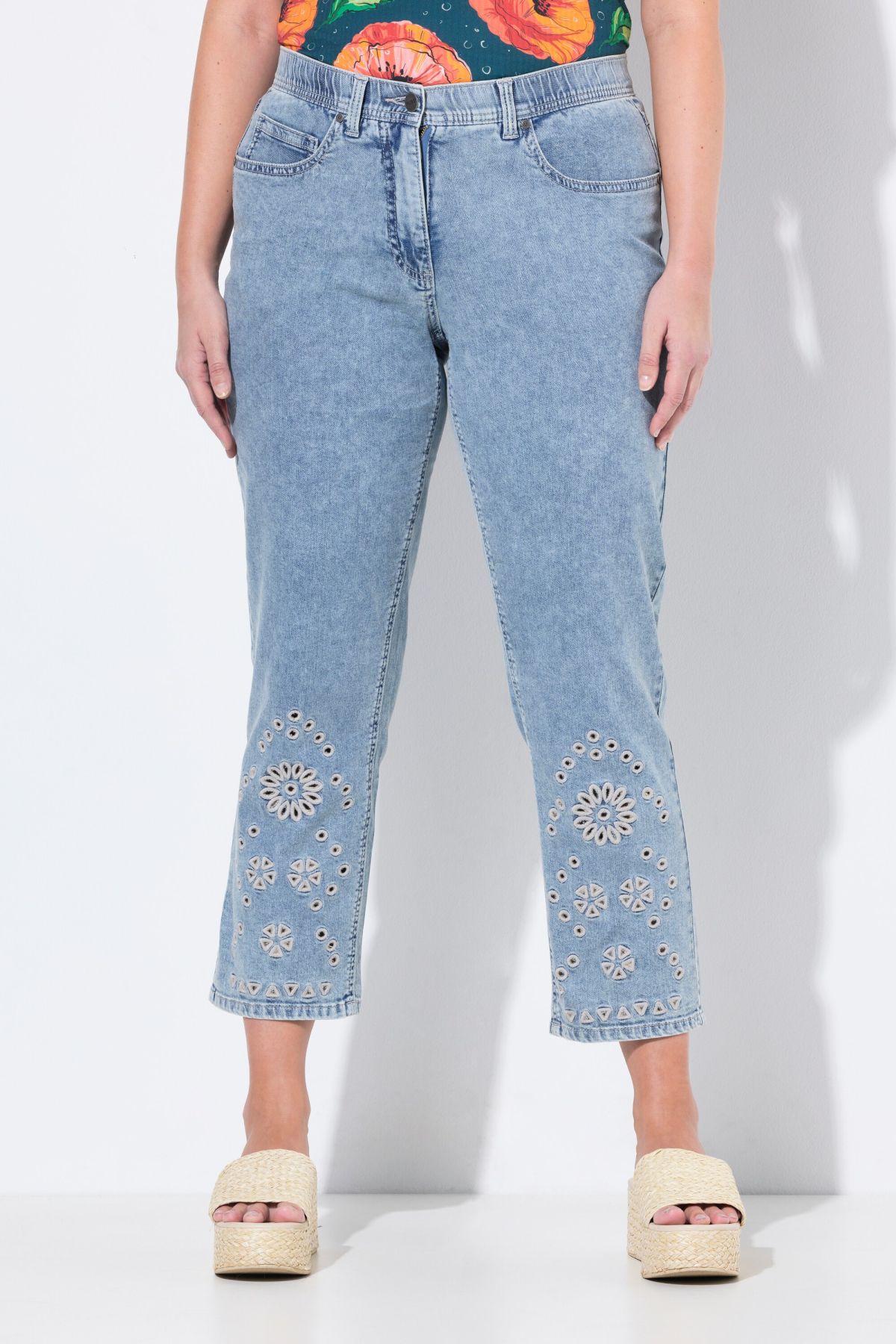 Home Sale 50% Eco Cotton Straight Leg Broderie Anglaise Jeans
