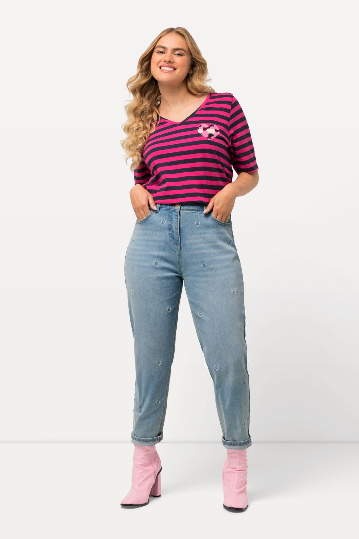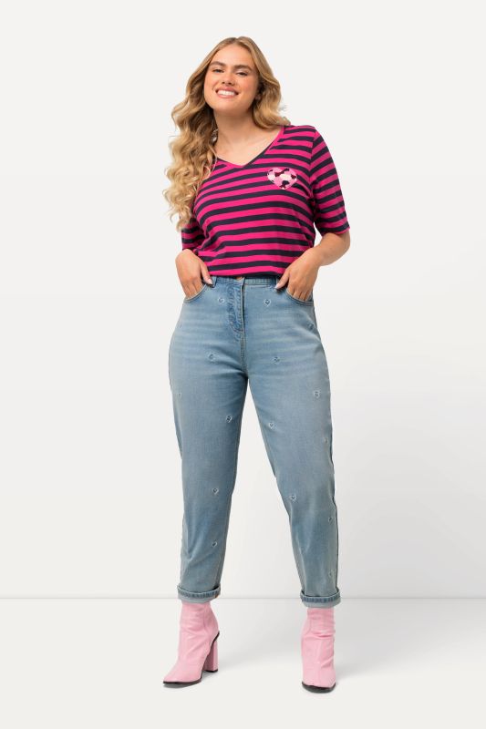 Heart Embroidery Mom Jeans - Our classic high-waisted cut with playful embroidered heart details.