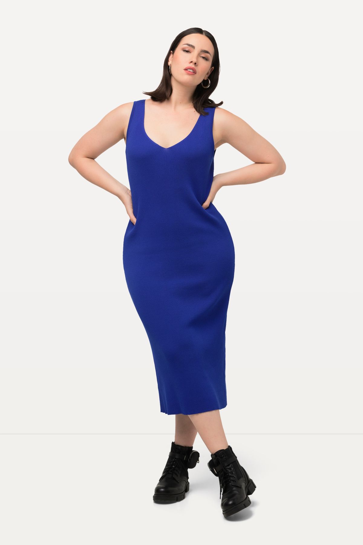 Ribbed Sweater Knit V-Neck Tank Dress
