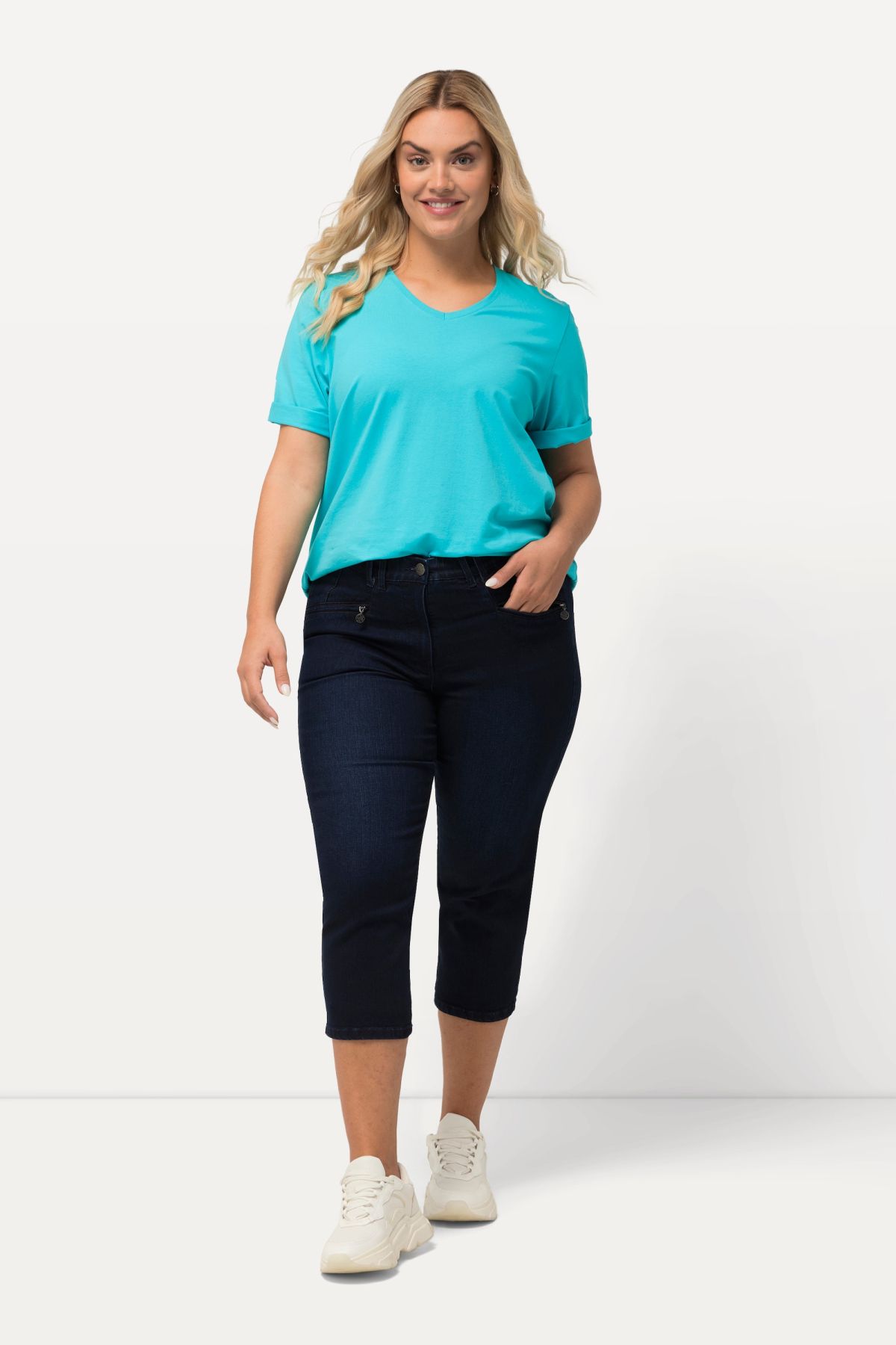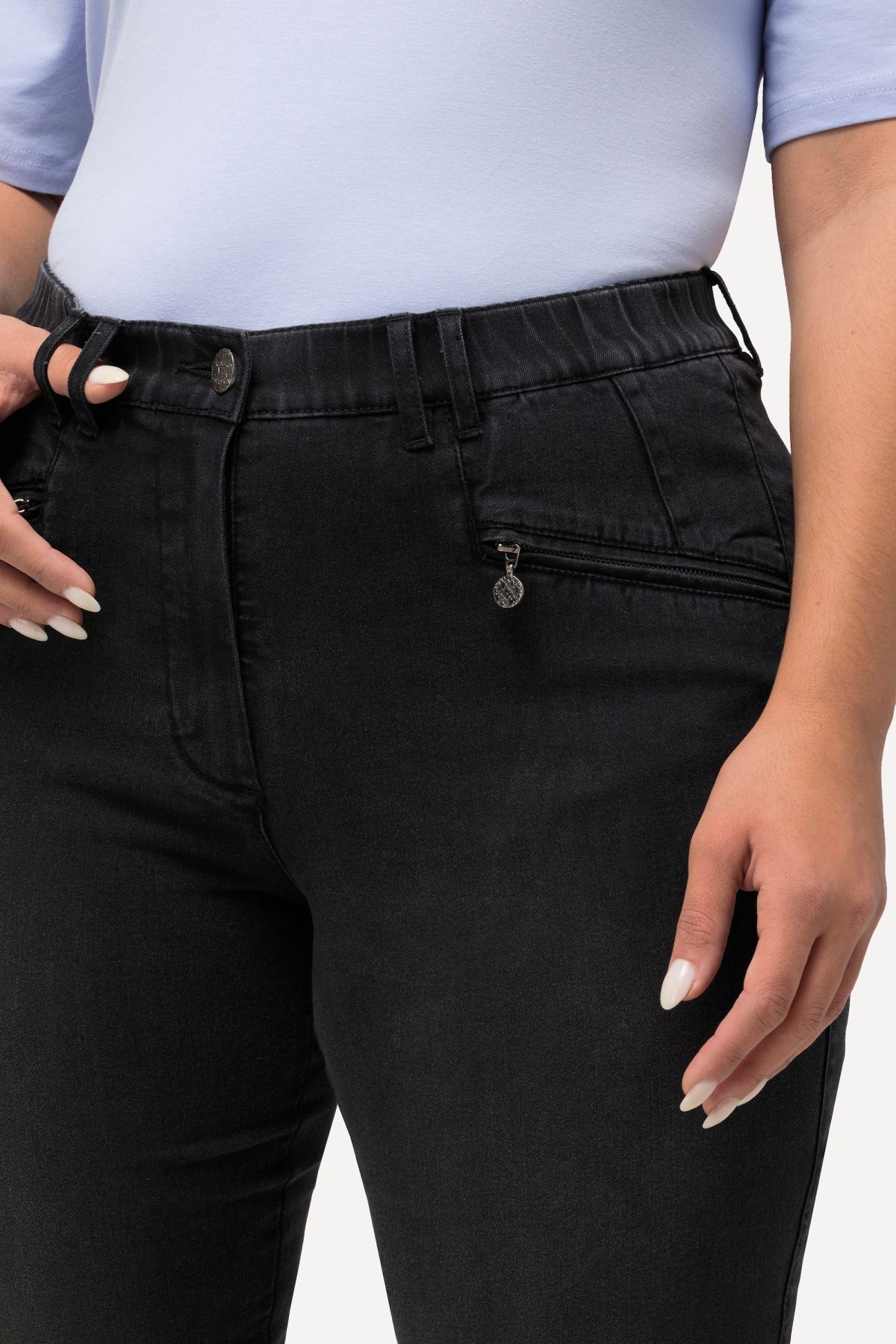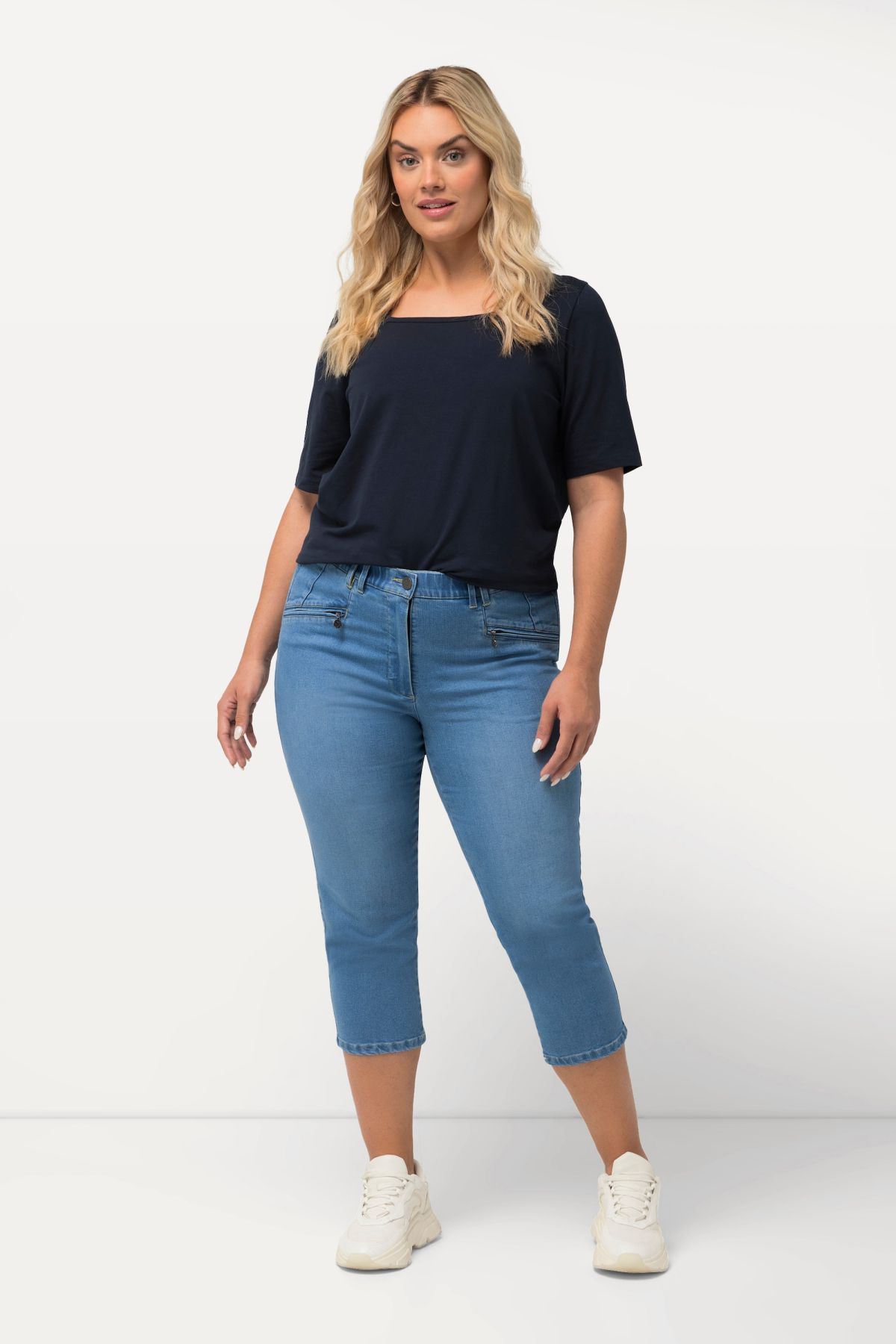 Cropped Stretch-Blend Jeans - Our MONY fit jeans in a summery cropped length. Comfort waistband with belt loops, zippered pockets, cropped 7/8 length.