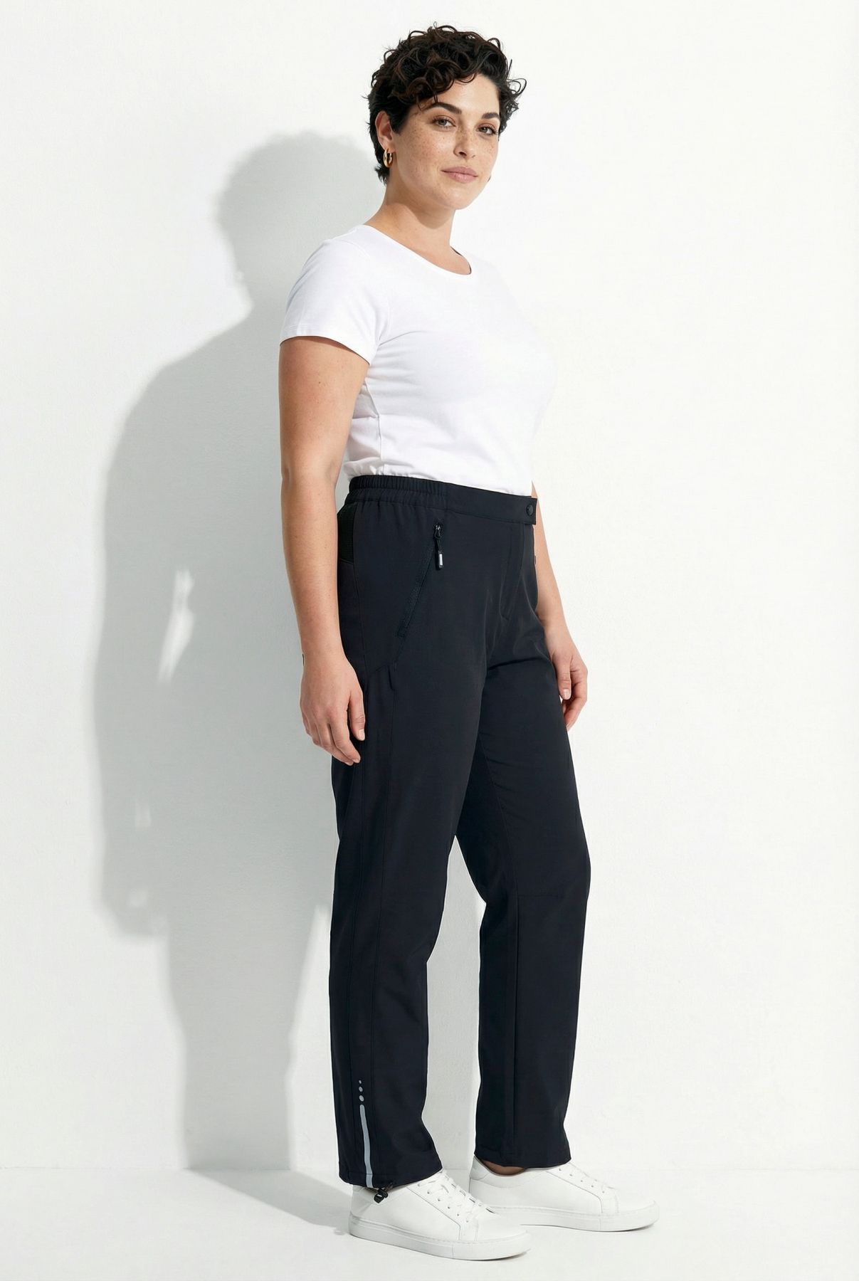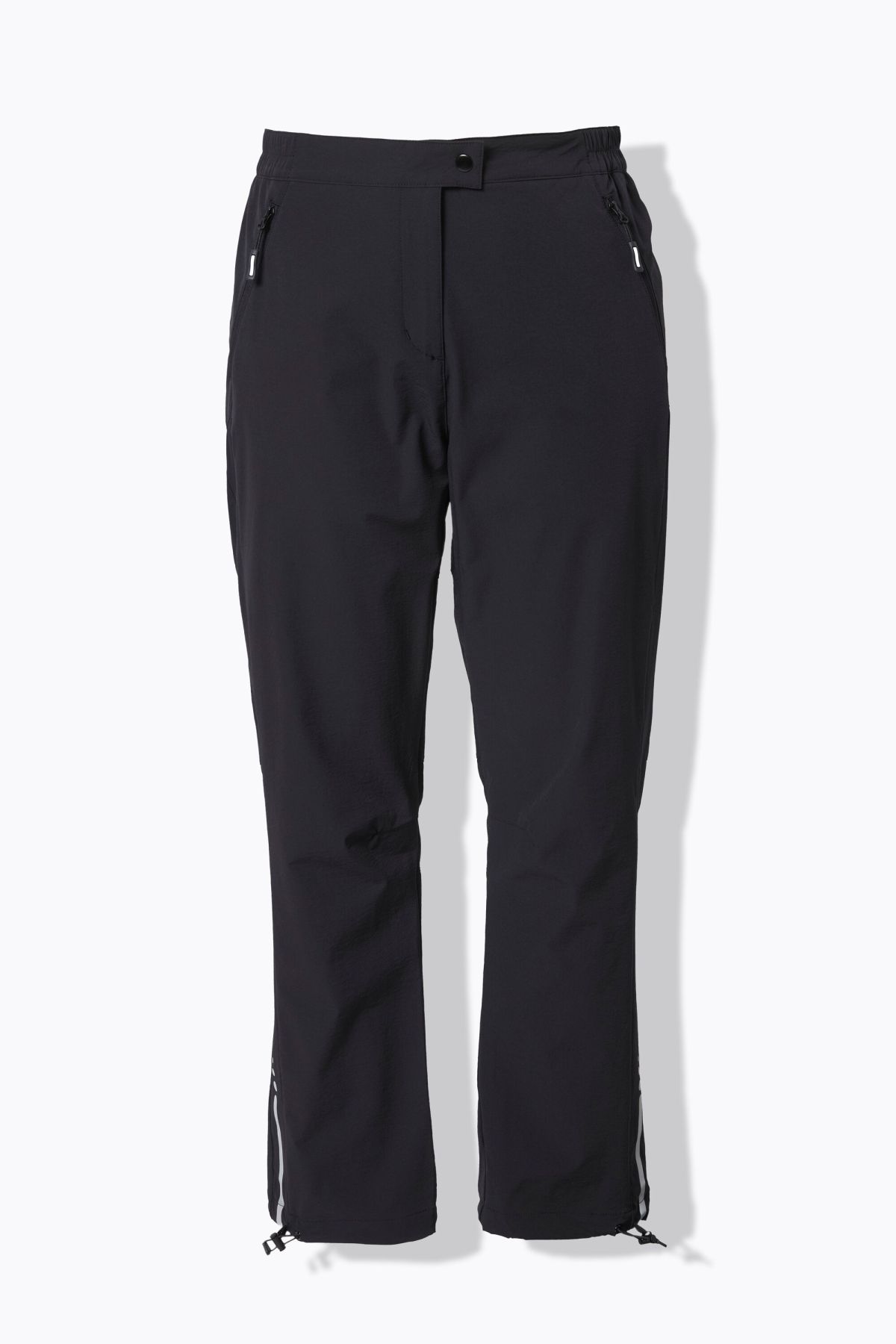 Superfit functional stretch trousers – straight, comfortable leg. Water-repellent 4-way stretch fabric with fluorine-free DWR finish. Partially elasticated waistband with breathable mesh insert in the back. Snap button closure with side zip pockets. Hem with fashionable reflective print and drawstring – always your desired silhouette.