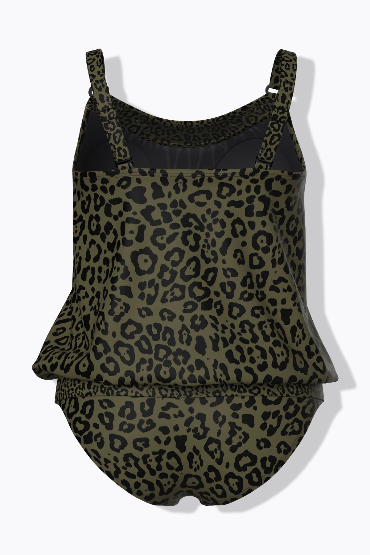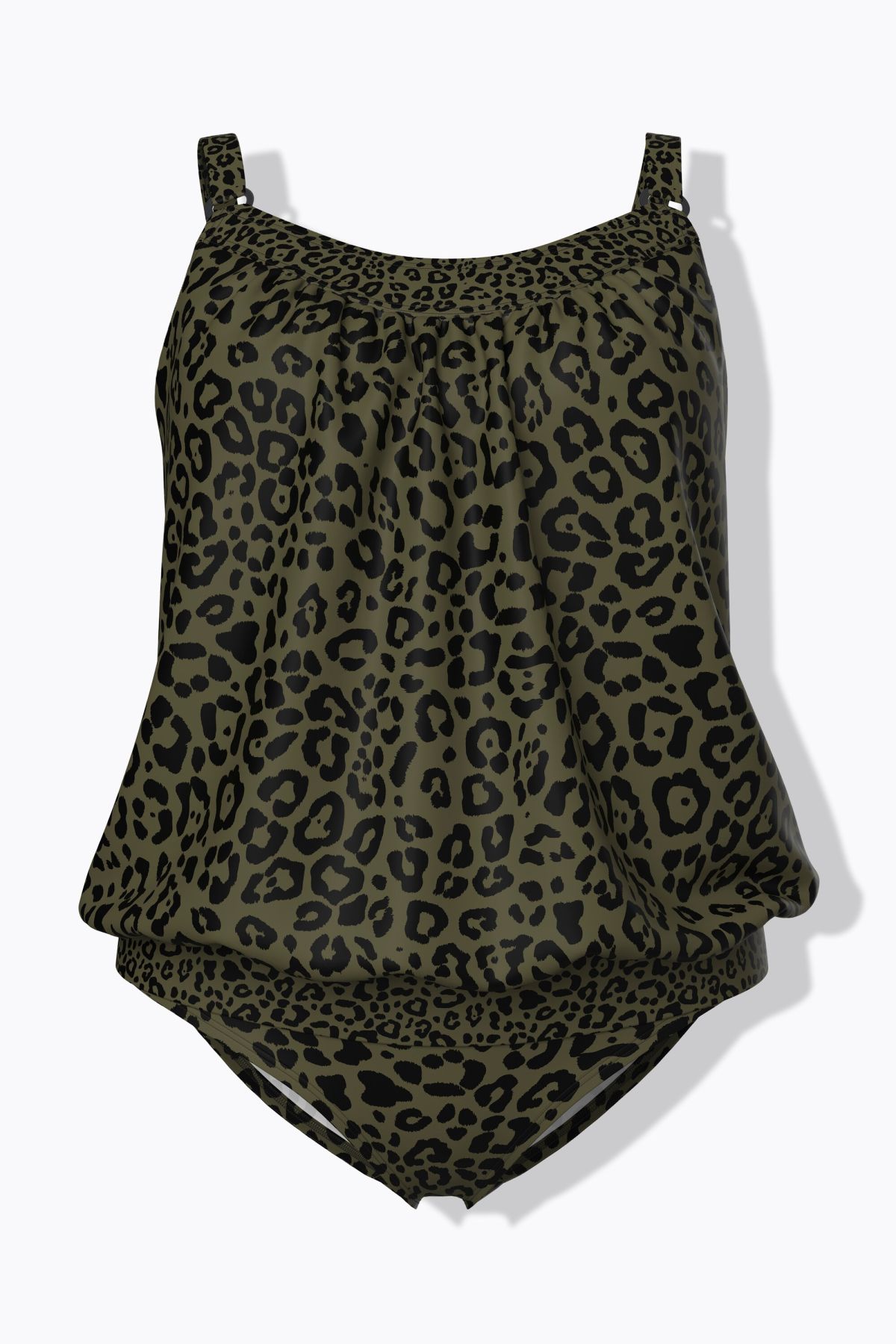 Tankini, two-piece set with soft cups and leopard print. Elasticated hem – always comfortable fit. Longer top with a solid neckline, adjustable straps with decorative ring, and supportive underbust band. Matching briefs. OEKO-TEX certified.