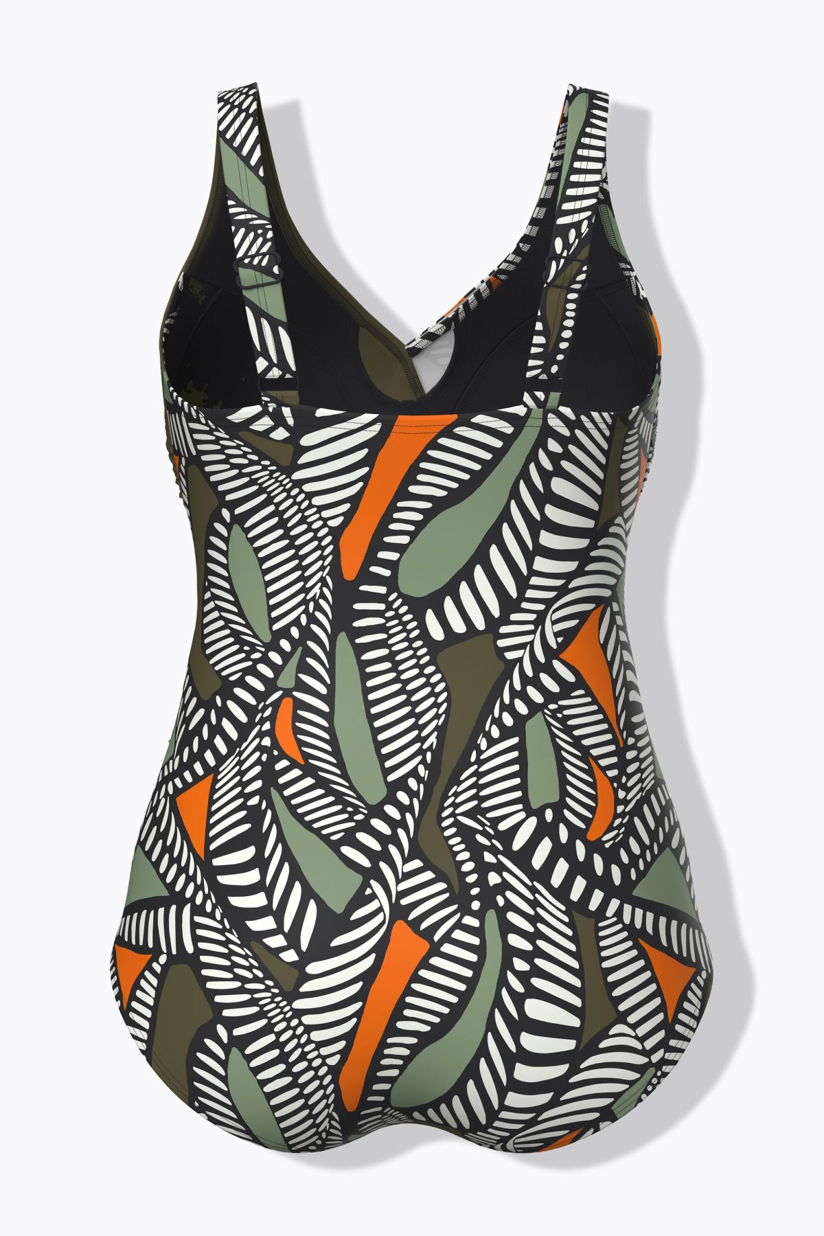 Swimsuit with soft cups and a wrap effect thanks to the mix of patterns - decorative straps at the sides of the waist. Underbust band, front lining. OEKO-TEX certified.