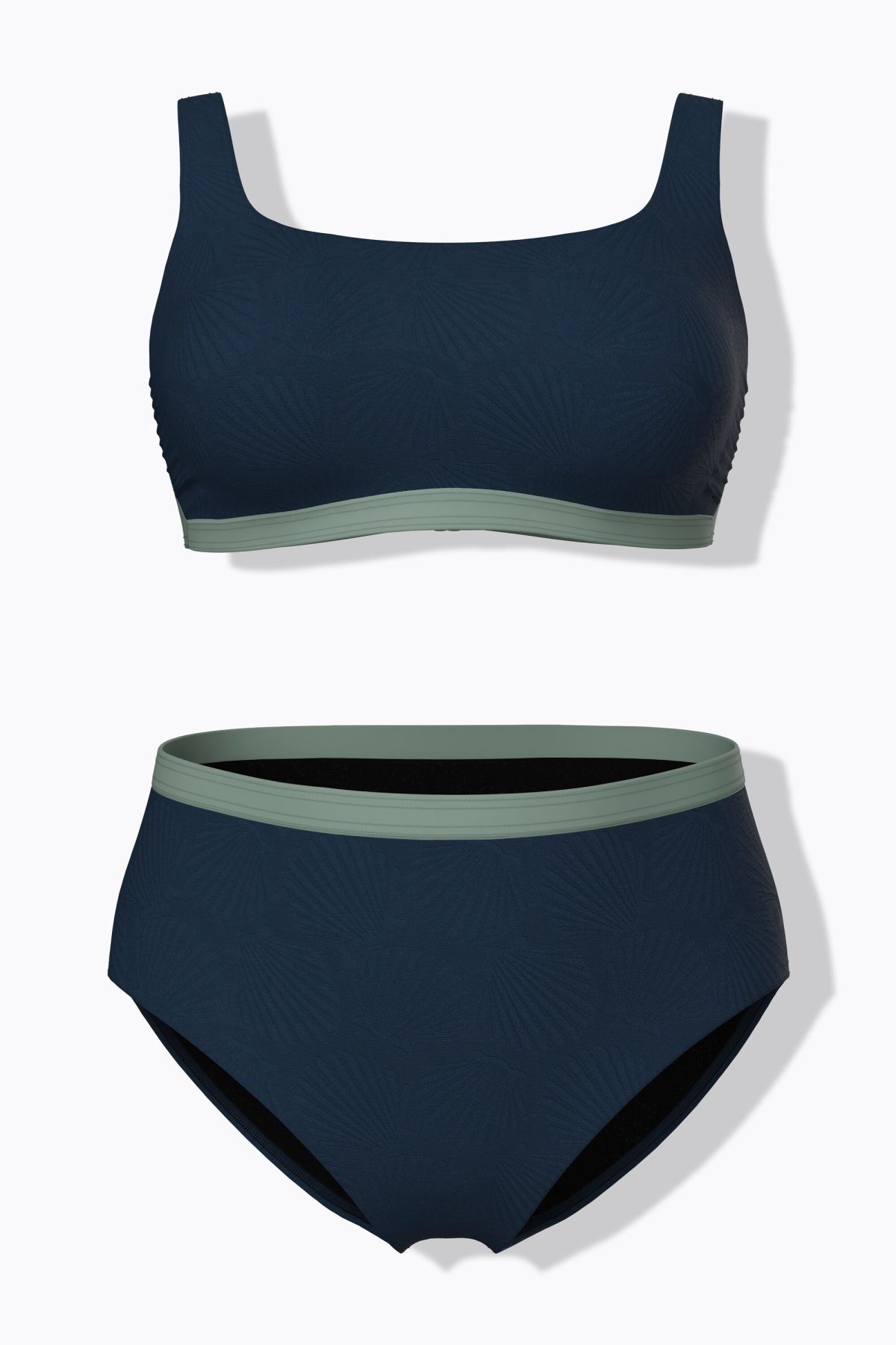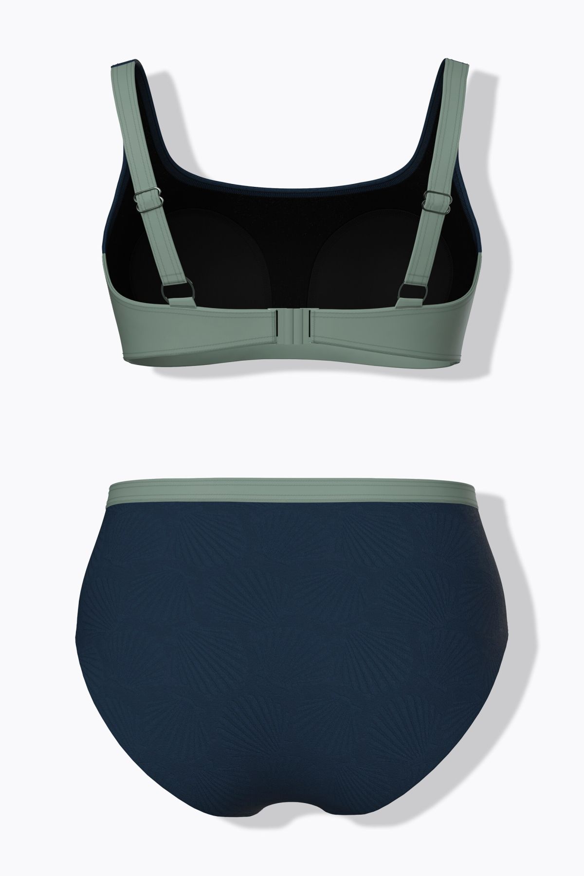 Bikini, two-piece, with soft cups and a delicate shell texture. Top with adjustable straps and supportive underbust band, fully lined. Matching bottoms. OEKO-TEX certified.