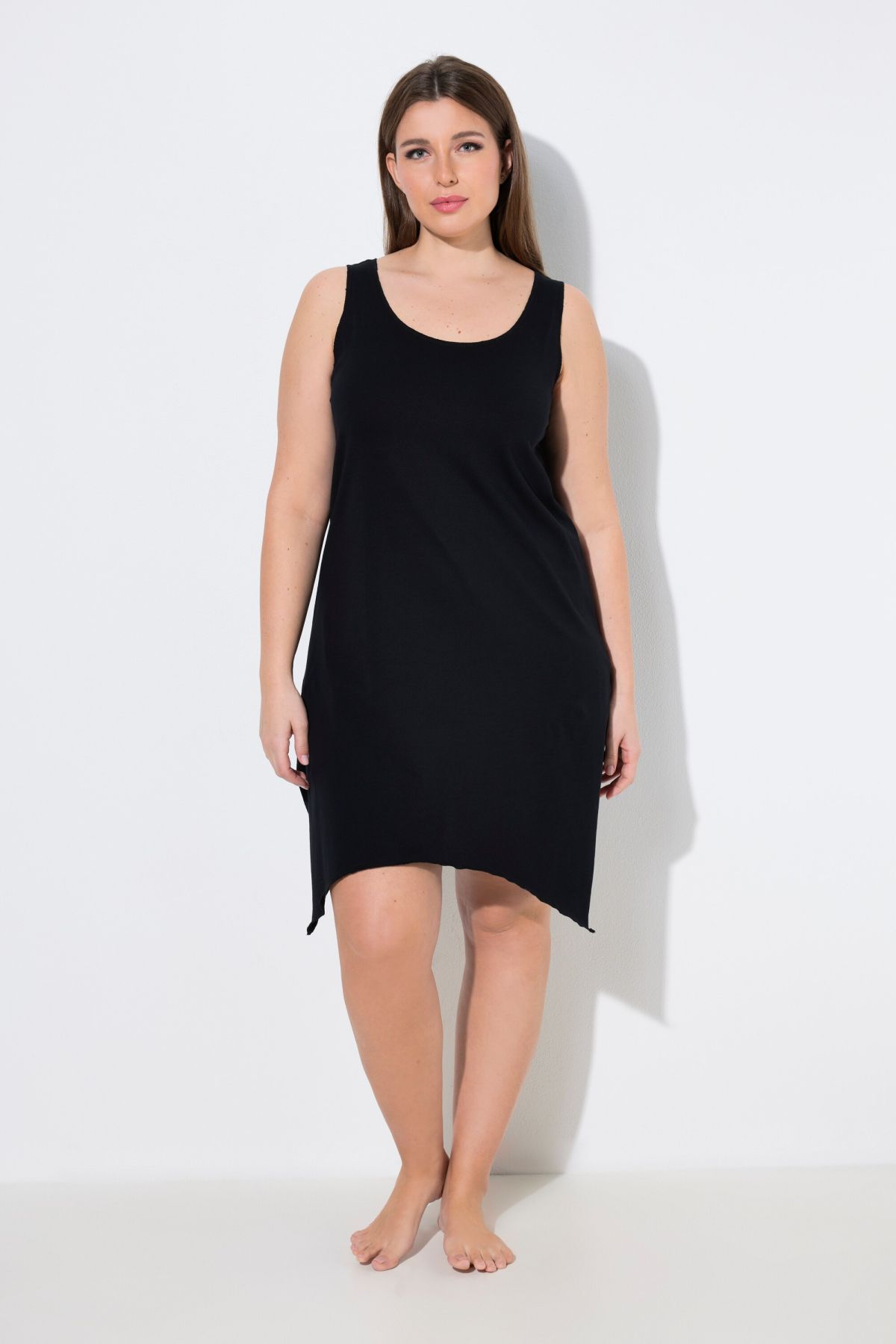 Nightgown - very airy with visible seams. Comfortable, sleeveless fit with a wide pointed hem. Round neckline, comfortably wide straps.