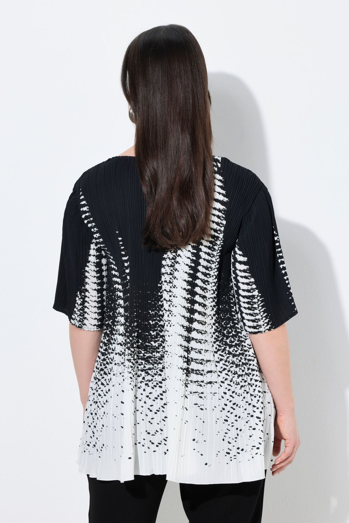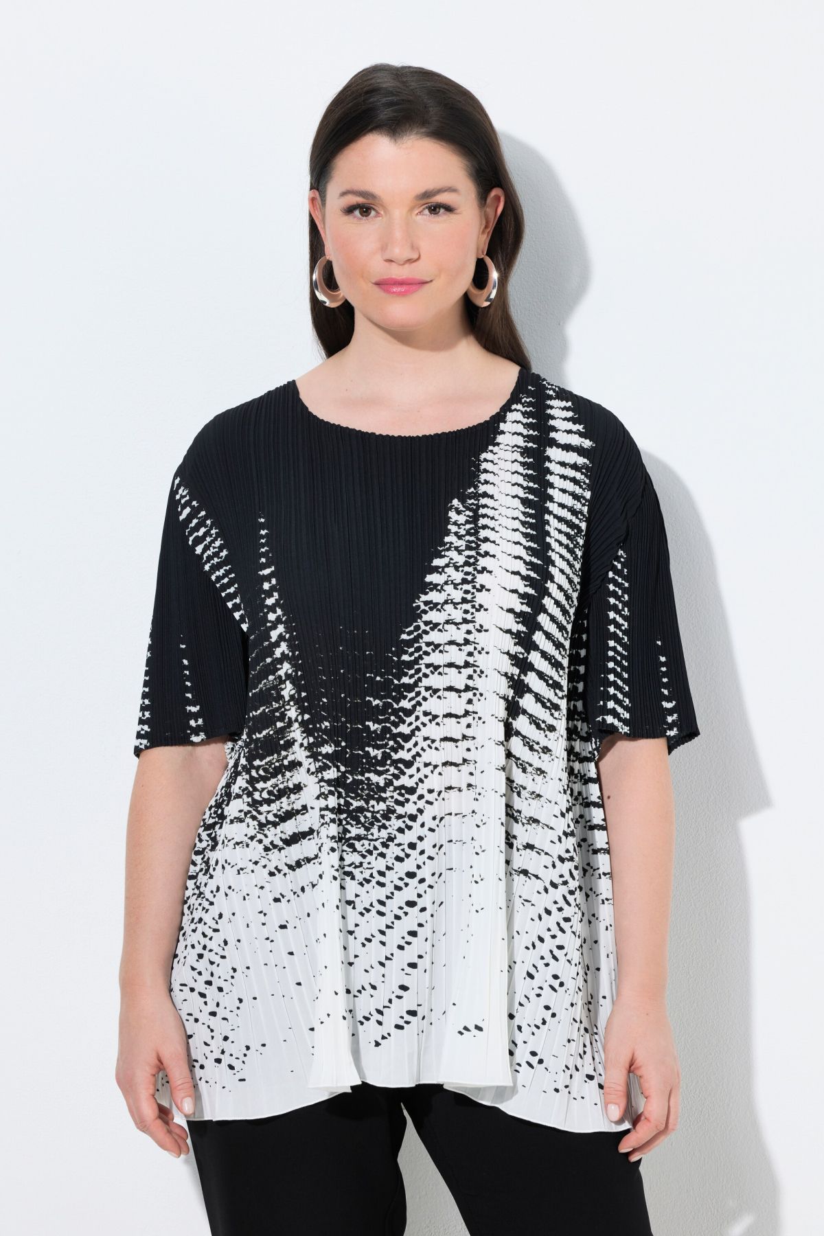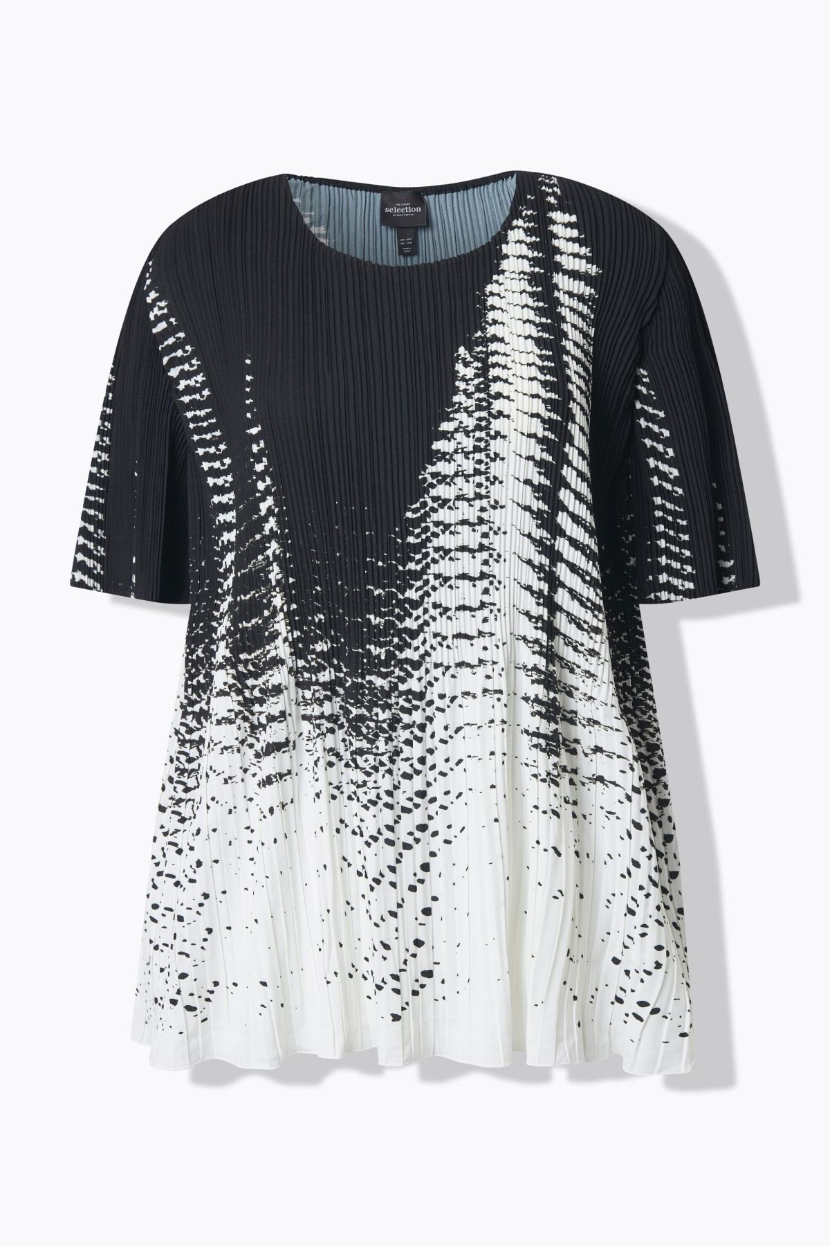 Pleated blouse, A-line, in elegant pleats with a modern print design. A clean look with a round neckline and half sleeves. Premium fashion for you! Selection by Ulla Popken stands for quality and wearable elegance. Selection by Ulla Popken transforms classics into modern highlights using high-quality materials with intricate prints and details – perfect for everyday wear and special occasions!