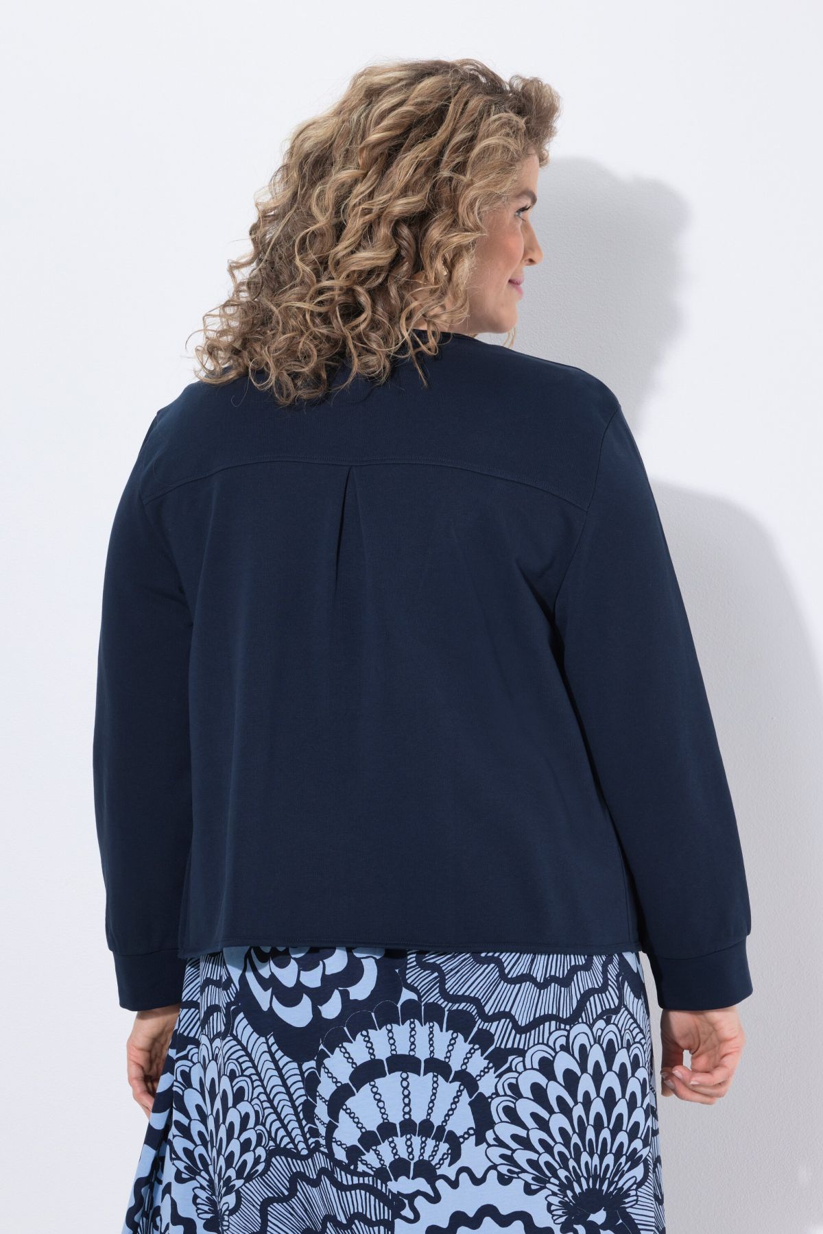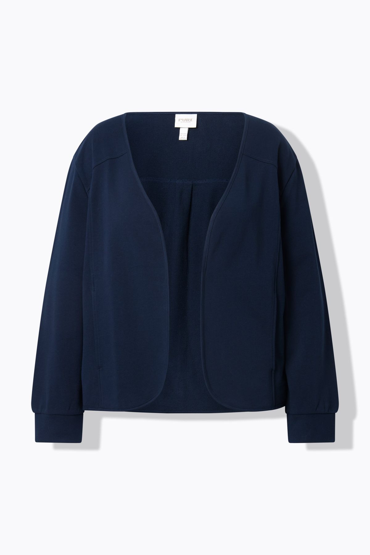 Organic cotton sweatshirt jacket. Comfortable regular fit in soft sweatshirt fabric. Open front with a V-neck, dropped shoulders, and wide long sleeves with ribbed cuffs. Discreet seam pockets and narrow trim. Organic; certified by ECOCERT Greenlife Licence no. 152026.