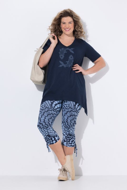 Organic cotton T-shirt. Comfortable A-line cut with fish motif, round neck. Short sleeves, pointed hem. Organic; certified by ECOCERT Greenlife Licence no. 152026.