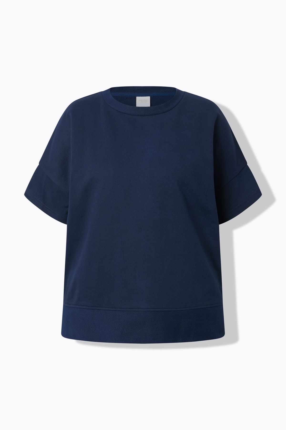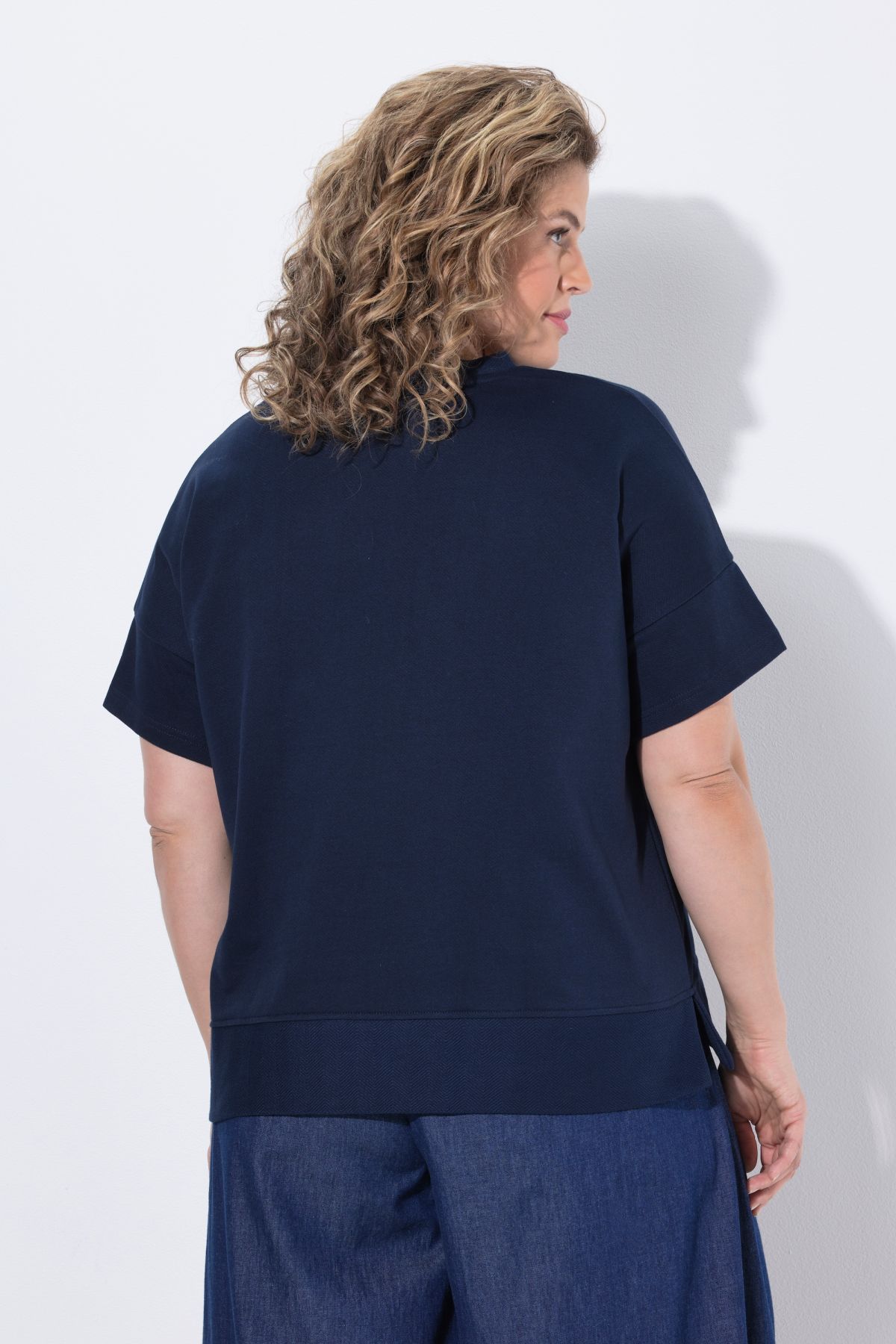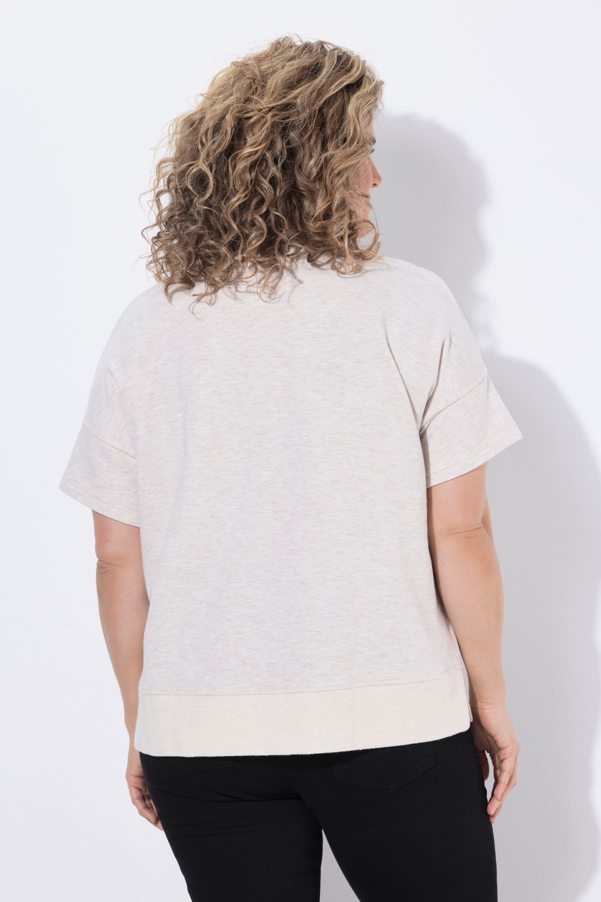 Organic cotton sweatshirt. Oversized fit in soft, finely textured sweatshirt fabric. Crew neck, dropped shoulders, short sleeves. Side slits at the hem for added comfort. Organic; certified by ECOCERT Greenlife Licence no. 152026.
