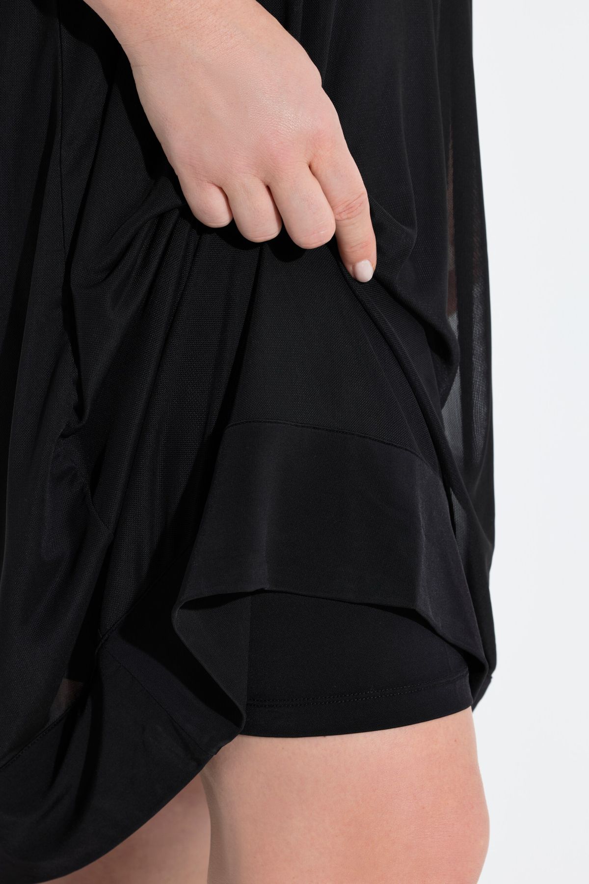 Slinky dress, A-line, made from high-quality, opaque slinky jersey with a sheer mesh overlay. Round neckline. Hem and straight mesh sleeves with wide slinky cuffs. Premium fashion for you! Selection by Ulla Popken stands for quality and wearable elegance. Selection by Ulla Popken transforms classics into modern highlights using high-quality materials with intricate prints and details – perfect for everyday wear and special occasions!