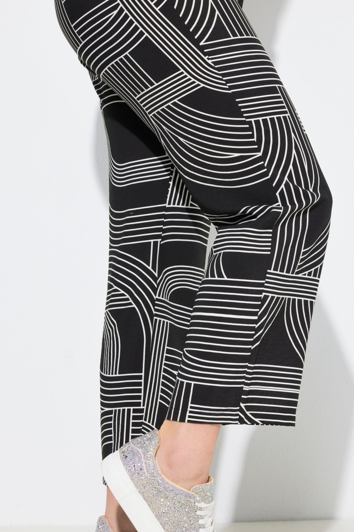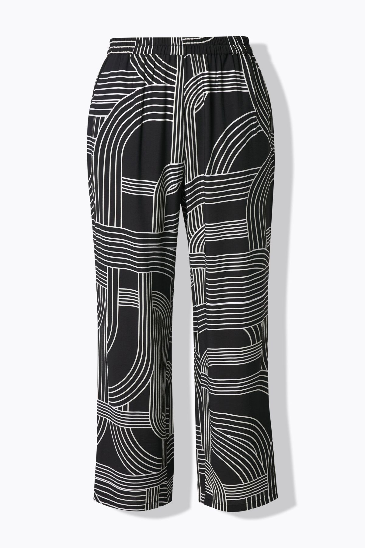 Rose trousers, wide, straight leg, with a graphic pattern. Elasticated waistband with side pockets.