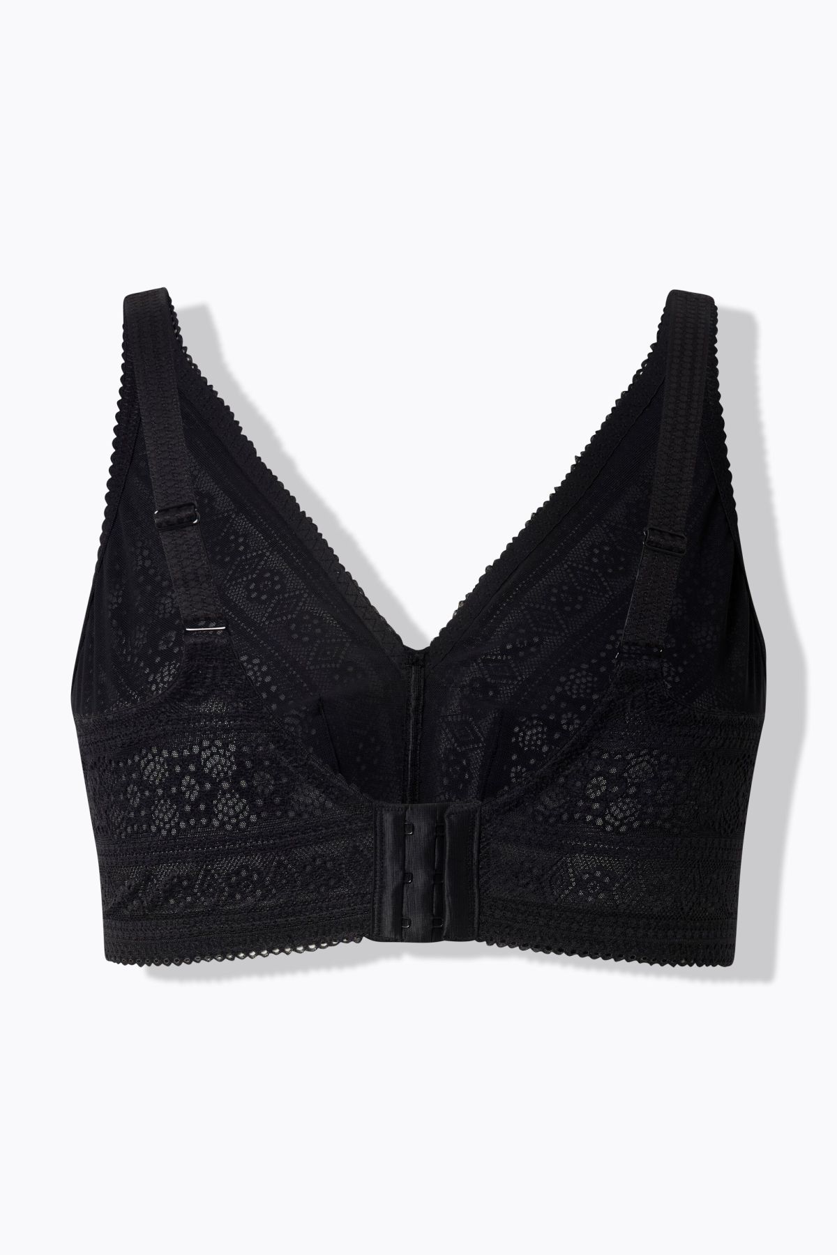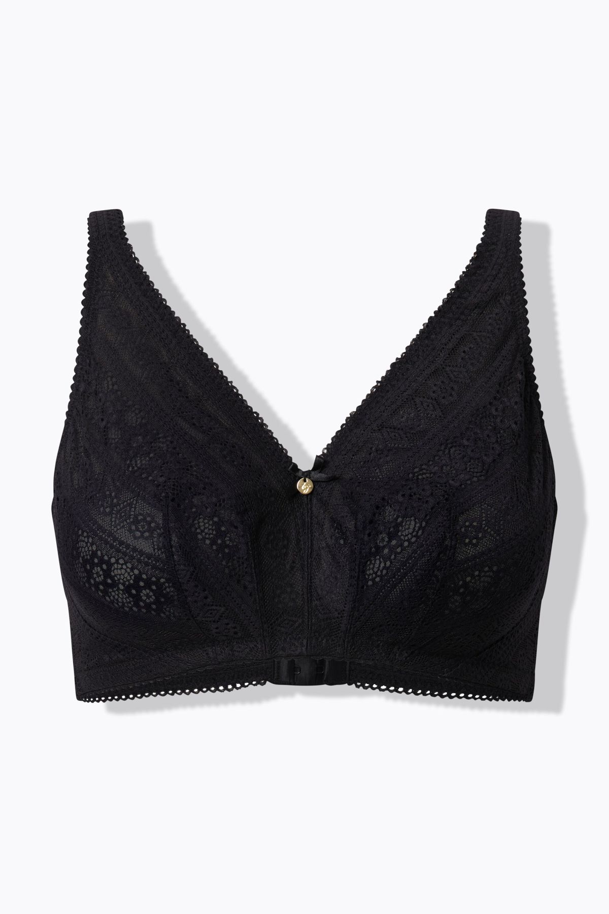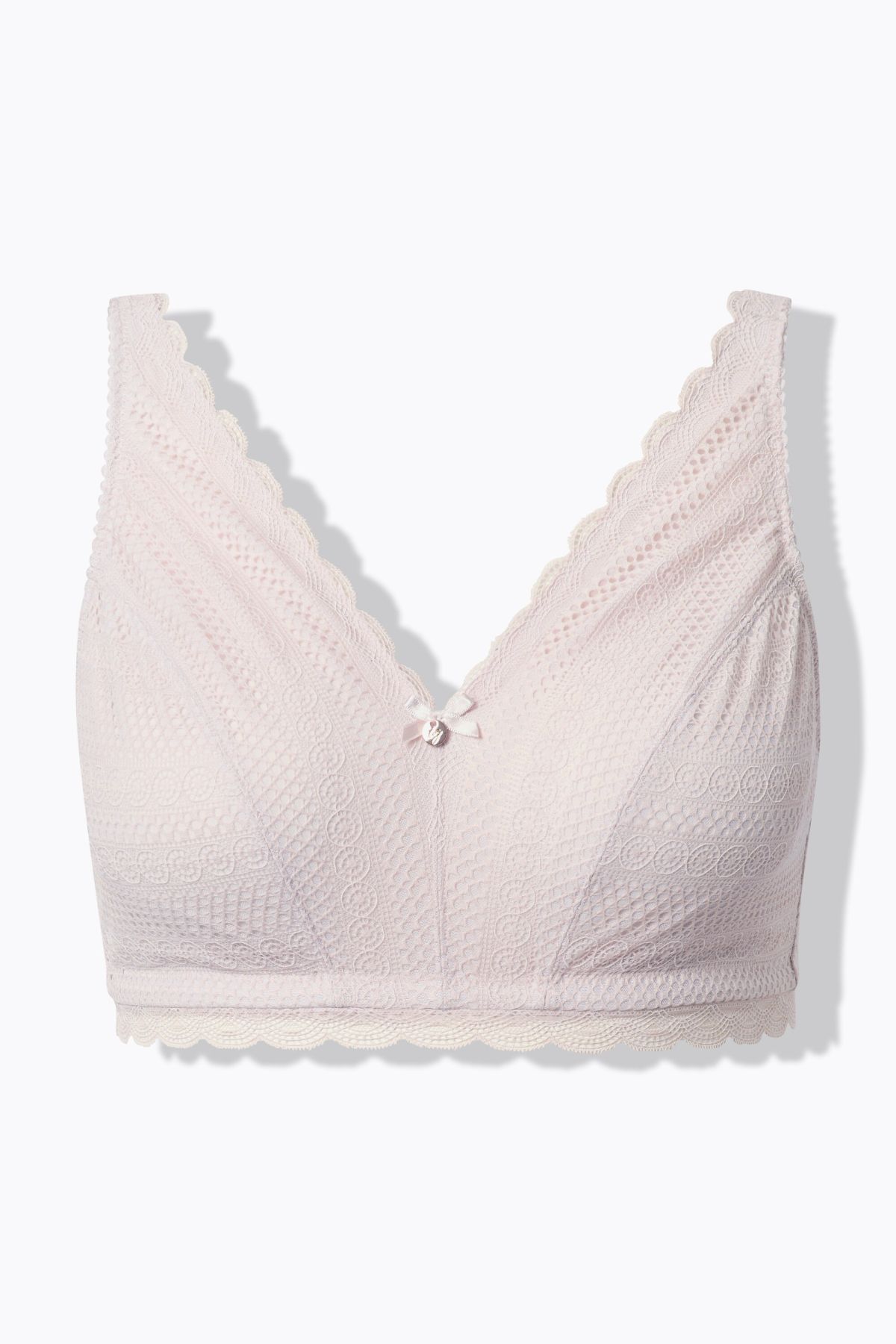 Wireless bralette. Cups made of delicate lace with opaque mesh lining. Elasticated, supportive underbust band with decorative trim. V-neck, comfortably wide, adjustable straps. Comfortable and retains its shape thanks to the elastane content.