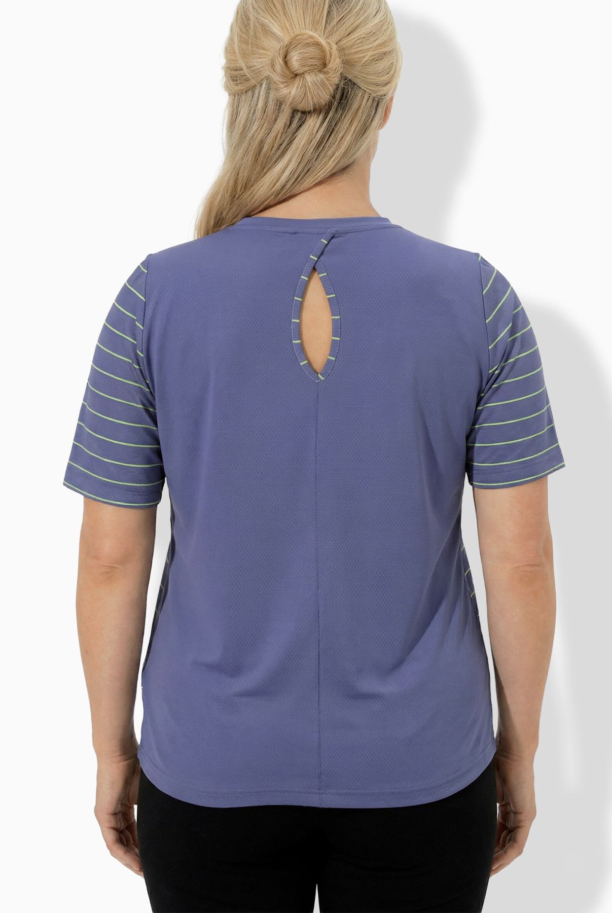 Functional T-shirt, classic fit, made from striped mesh jersey with a cut-out on the back. Dual function: breathable and quick-drying. Crew neck, short sleeves.