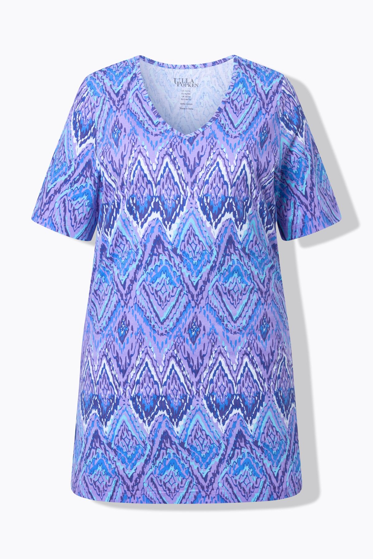 Long-sleeved shirt with a fashionable, graphic print and V-neck. Short sleeves.