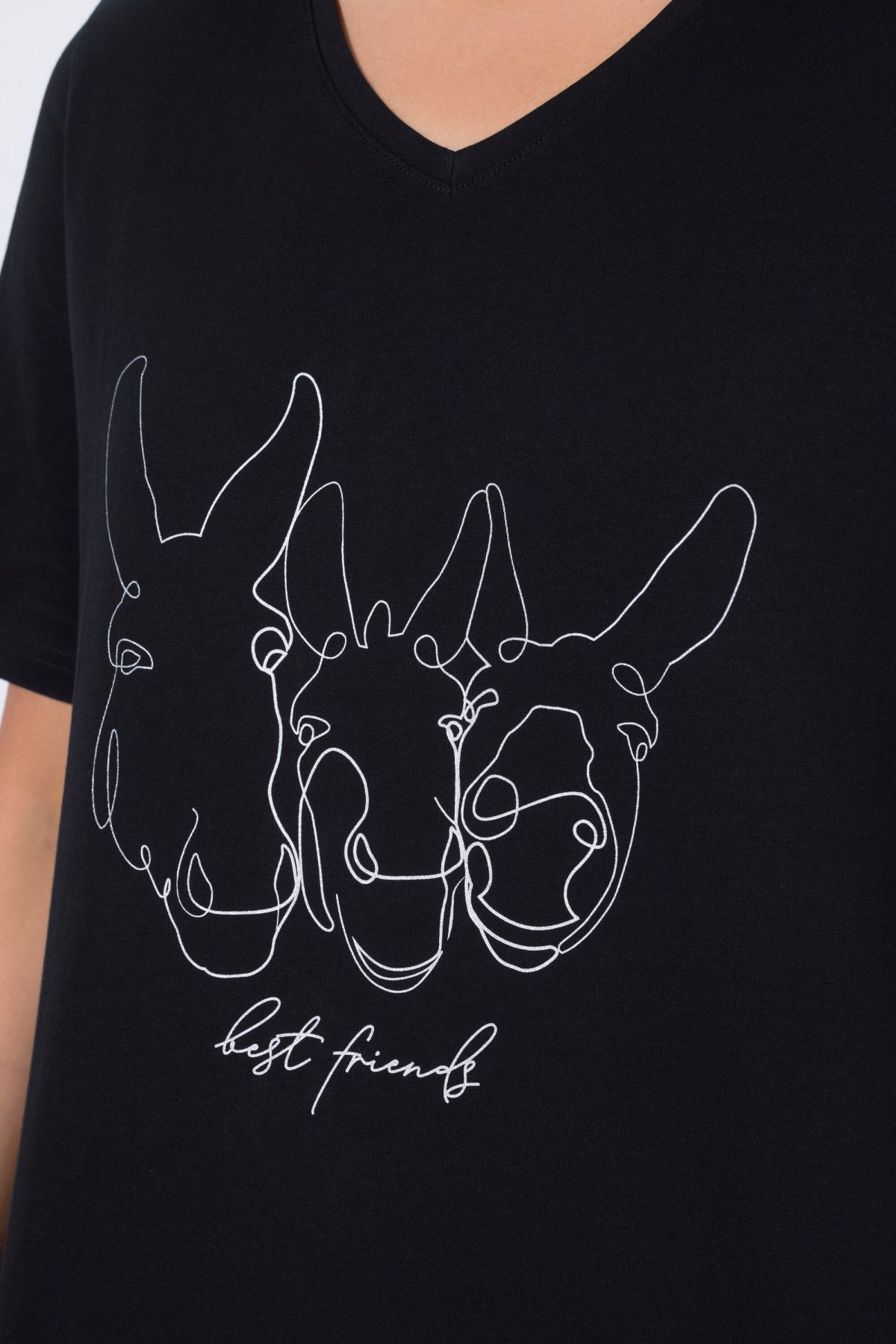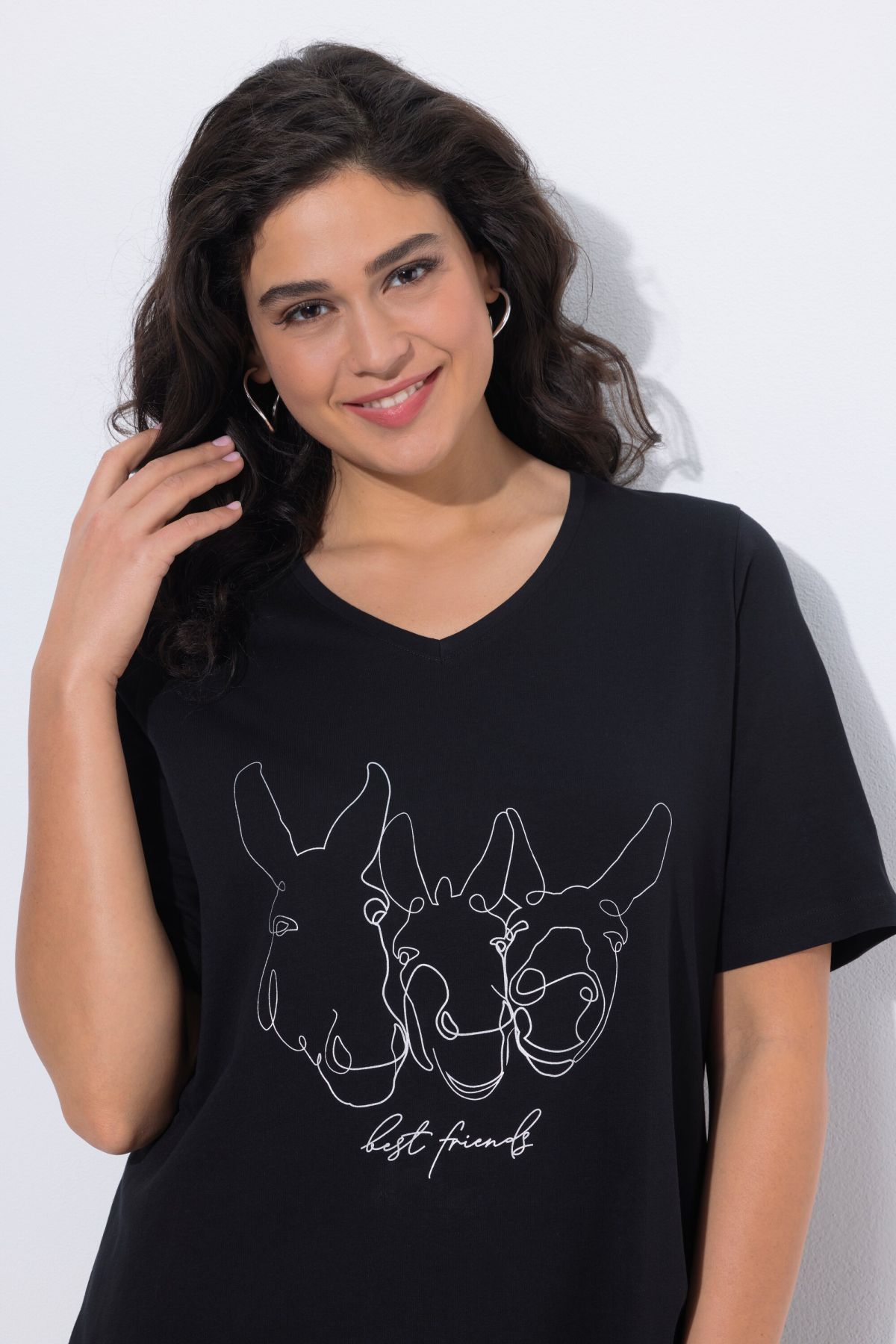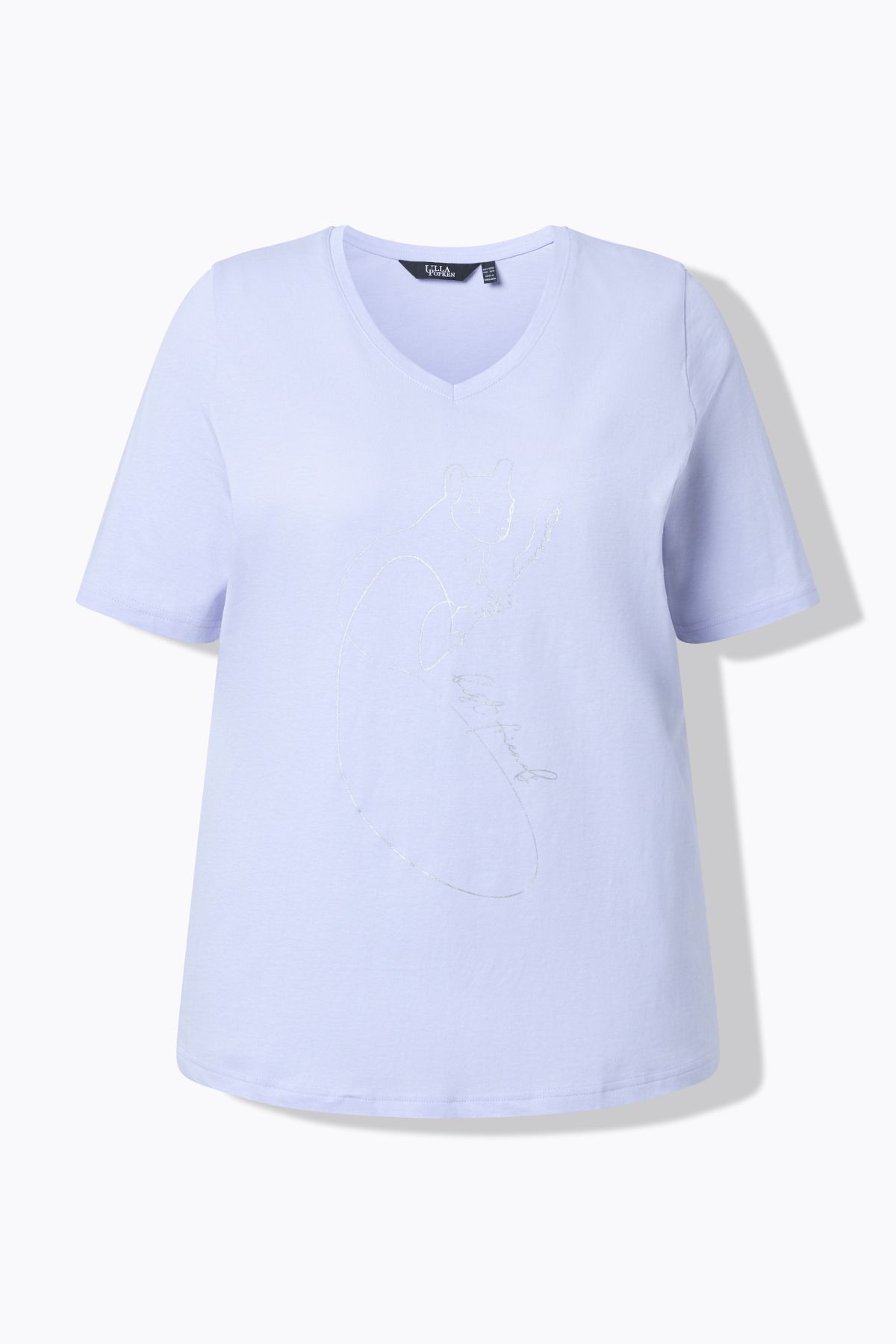 T-shirt, classic fit, made of soft jersey with a shiny animal print – each color is different. V-neck, short sleeves.