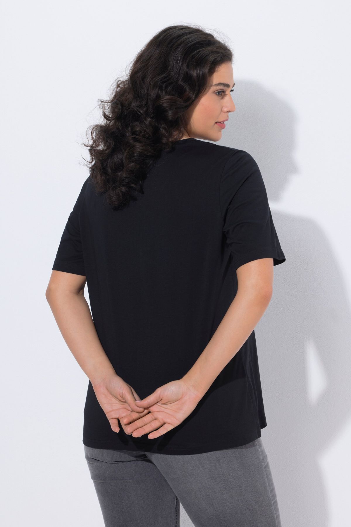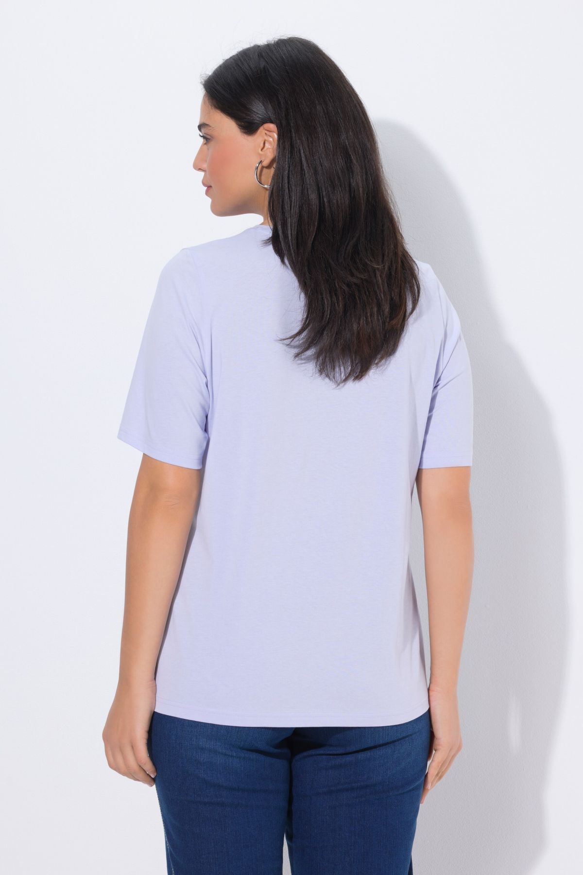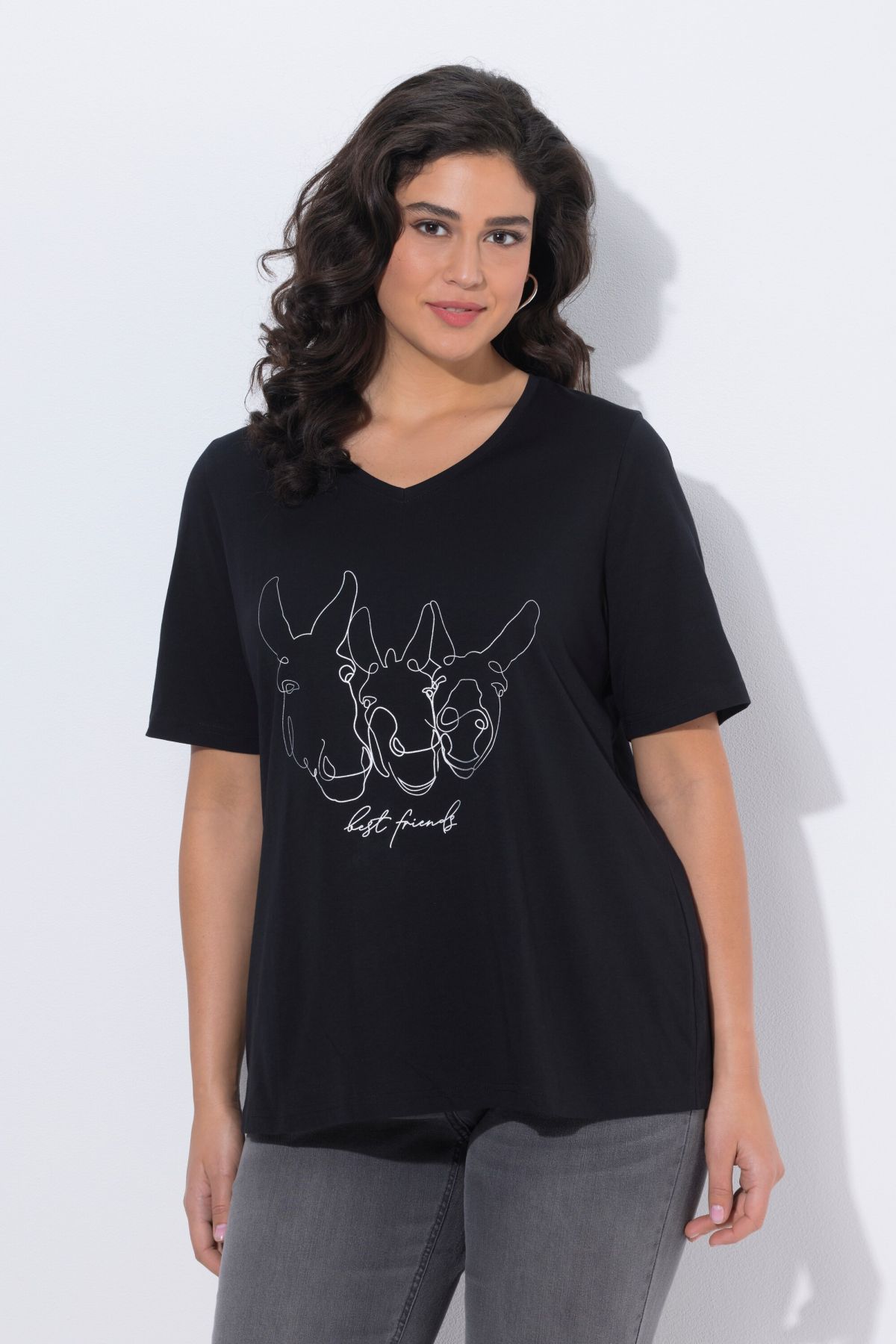 T-shirt, classic fit, made of soft jersey with a shiny animal print – each color is different. V-neck, short sleeves.