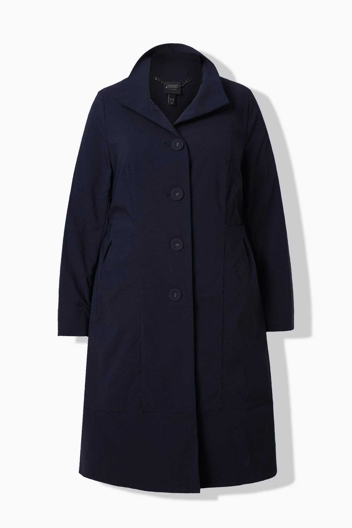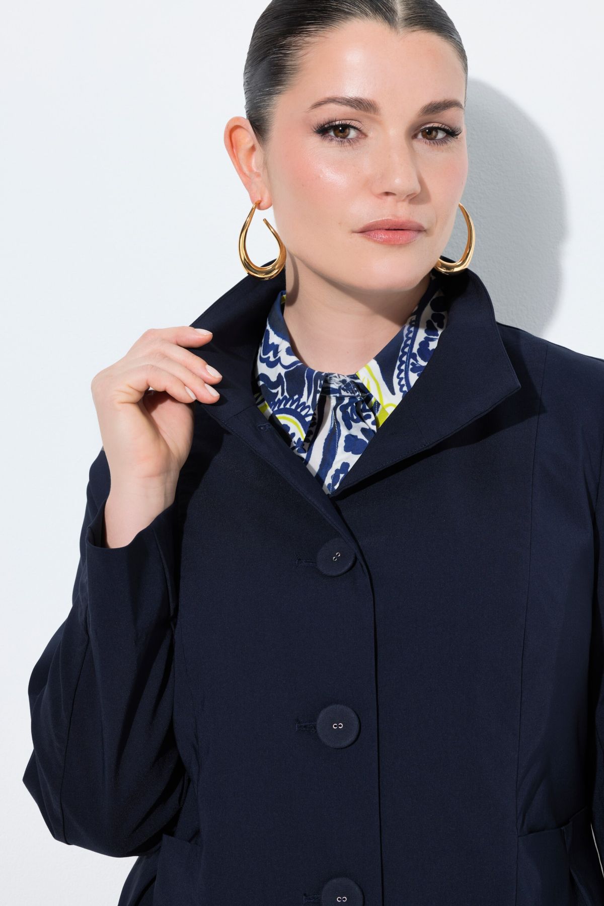 Bengaline coat, A-line with a comfortable hem width, made from high-quality bengaline – pleasantly stretchy and always perfectly shaped. Modern look with a large stand-up collar – can also be worn folded down. Decorative seams, button placket with covered buttons, and two pockets. Interior finished with shimmering satin piping. Premium fashion for you! Selection by Ulla Popken stands for quality and wearable elegance. Selection by Ulla Popken transforms classics into modern highlights from high-quality materials with elaborate prints and details – perfect for everyday wear and special occasions!