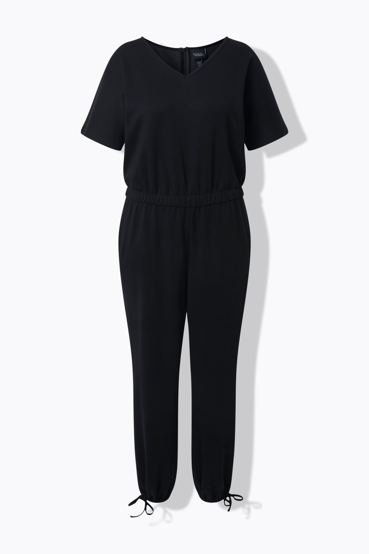 Jumpsuit, comfortable fit, made from soft cupro-touch jersey. V-neck, back zipper, elasticated waist. Side seam pockets, wide batwing half sleeves.