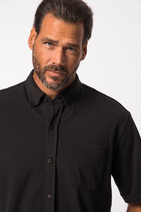 Piqué shirt, FLEXNAMIC®, short sleeve, button-down collar, modern fit, up to 8 XL