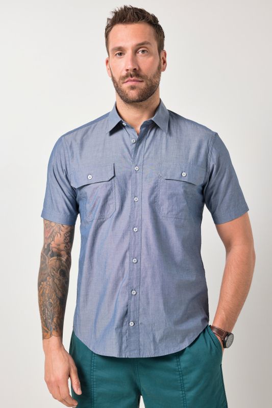 JP1880 Chambray Shirt, short sleeves, high-quality fabric with two chest flap pockets and a Kent collar. The tried-and-tested JP1880 Modern Fit is cut slightly slimmer, so you can also wear the shirt untucked for a stylish look. JP1880 has also thought of everything: For optimal comfort, we make the shirt buttons one size larger from size 4XL upwards. JP1880 - for real men only!