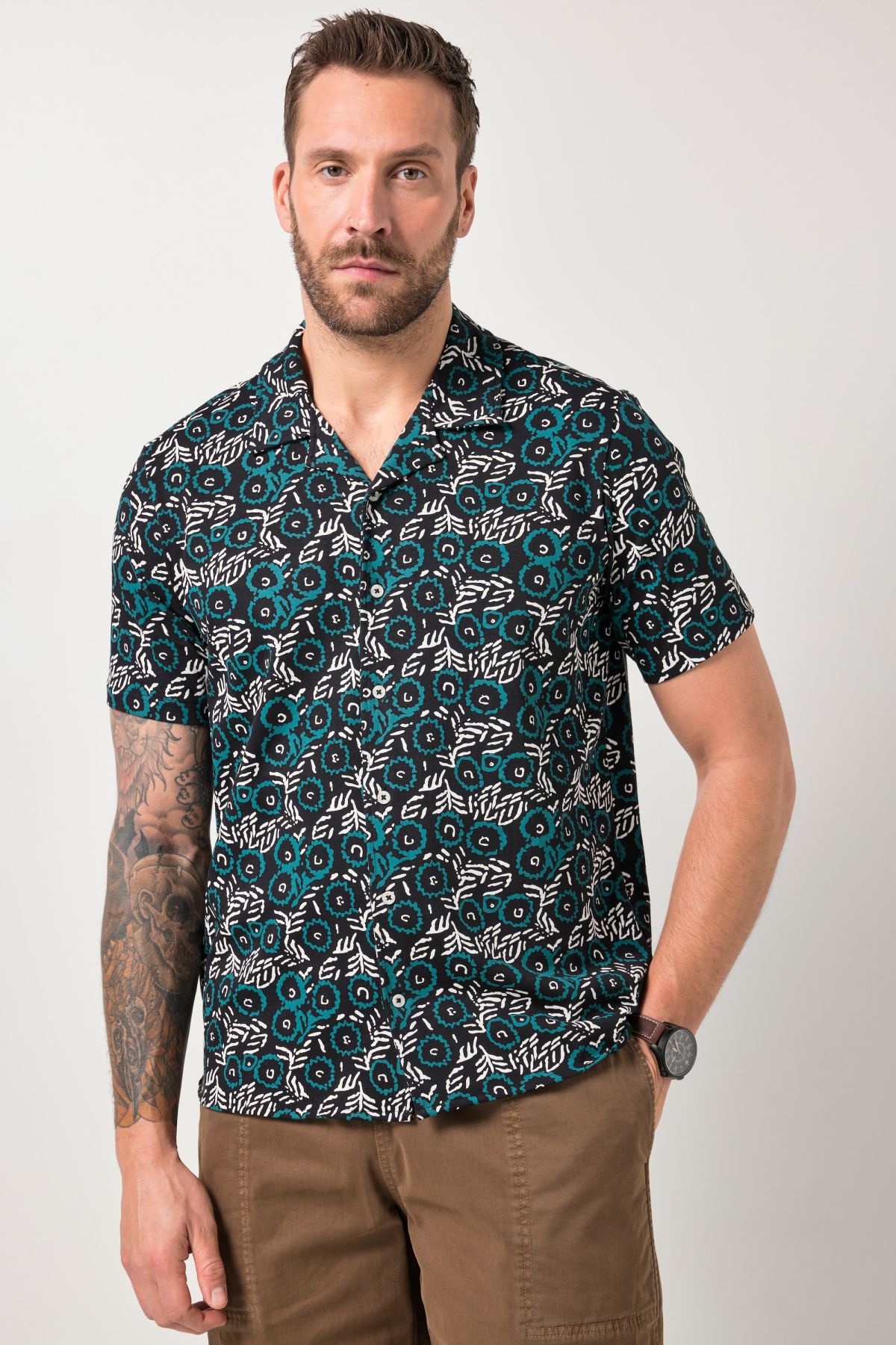 JP1880 jersey shirt, short sleeve, Cuba collar, all-over print, Cuba fit, up to 8 XL