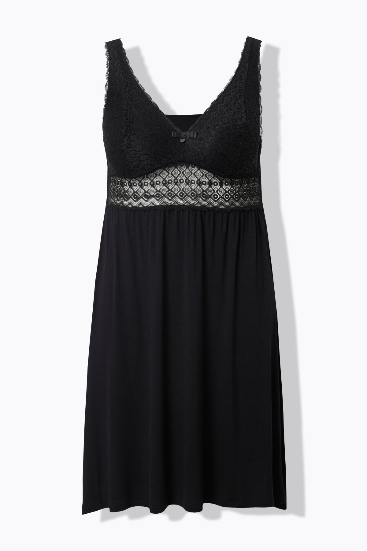 Бюст от непрозрачна дантела с подплата, прозрачна дантелена лента под бюста, без ръкави, V-образно деколте, пола с удобна ширина, дължина приблизително 95-110 см.
