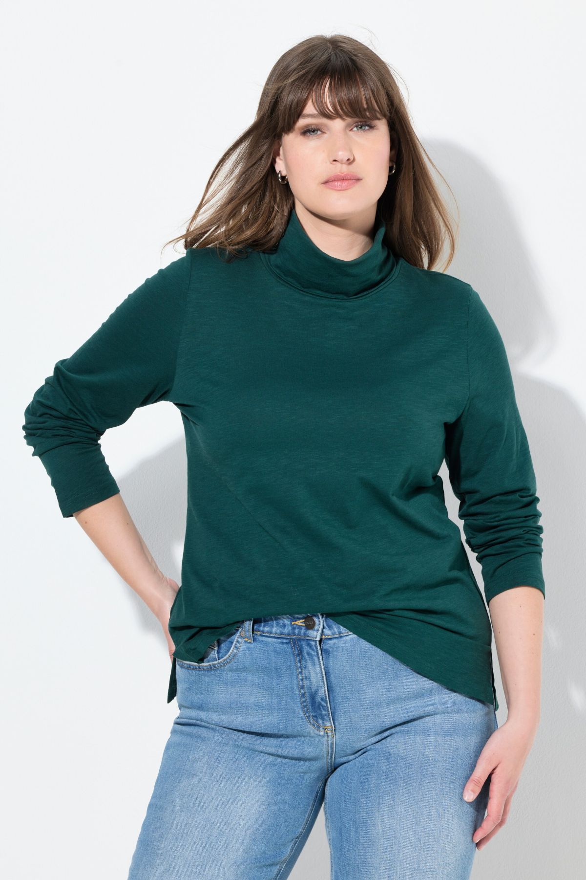 Cotton Knit Turtleneck# always refined, soft and perfect on its own or under a sweater or blouse. Classic fold-over turtleneck and long sleeves. Slim fit.