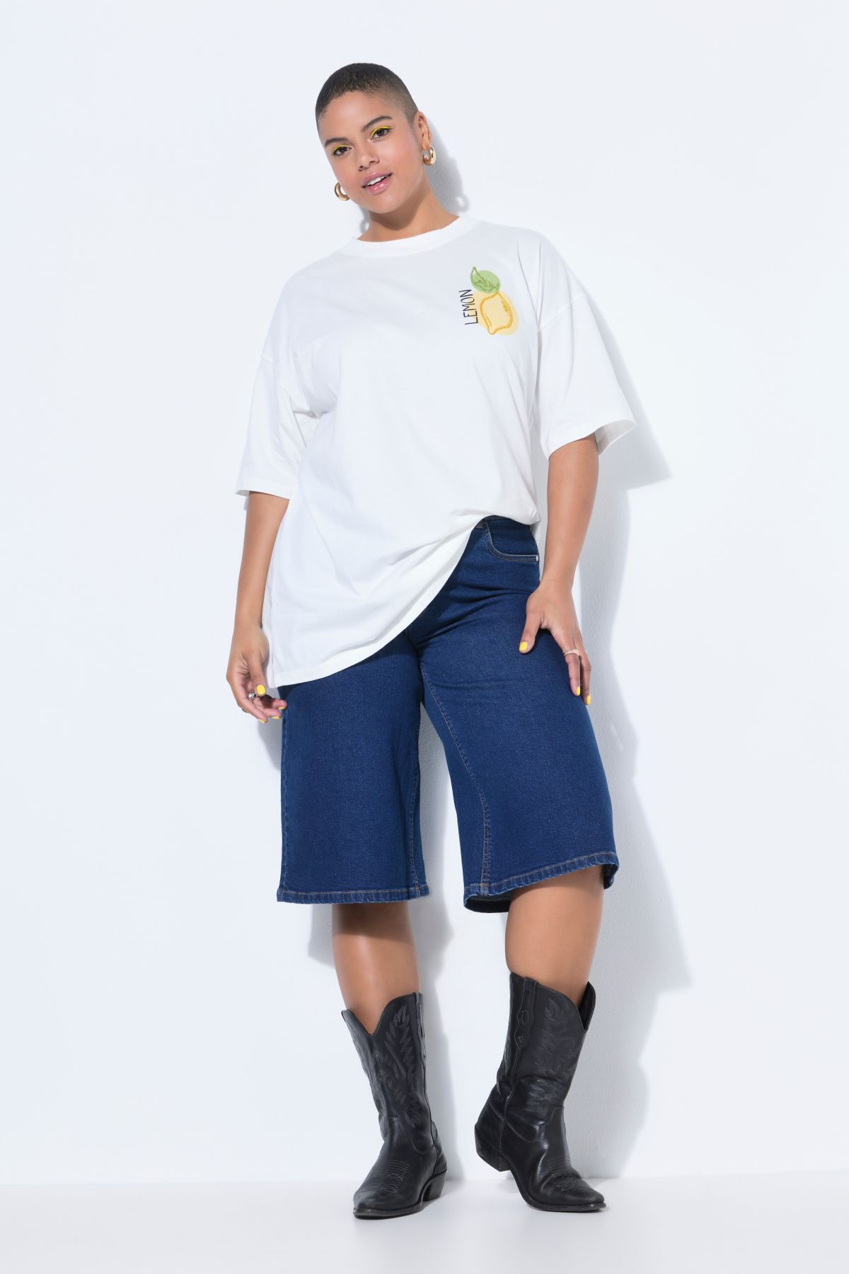 Long Denim Shorts - A modern, wide-leg silhouette with a comfortably stretchy fit.